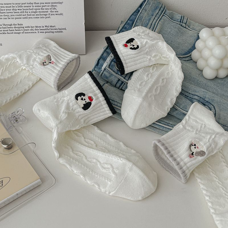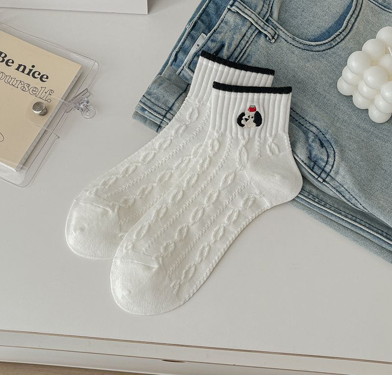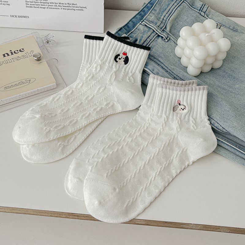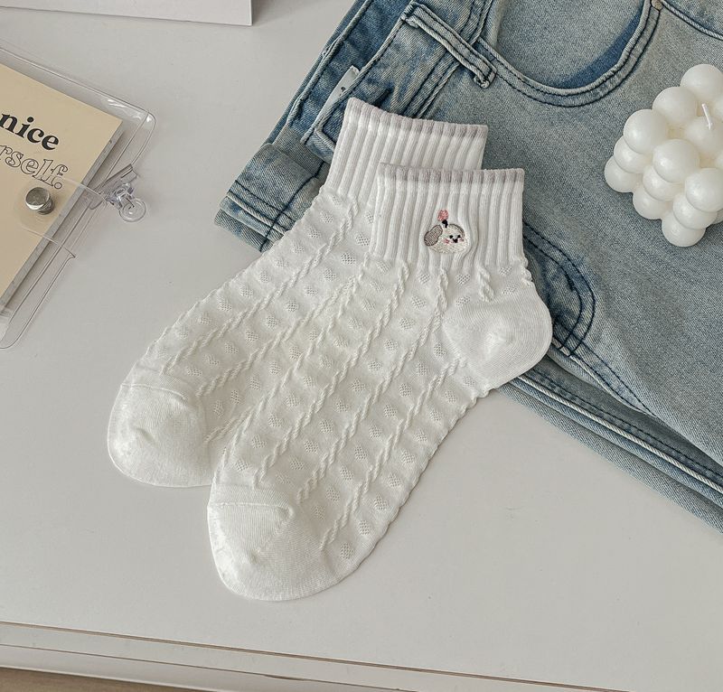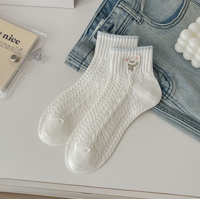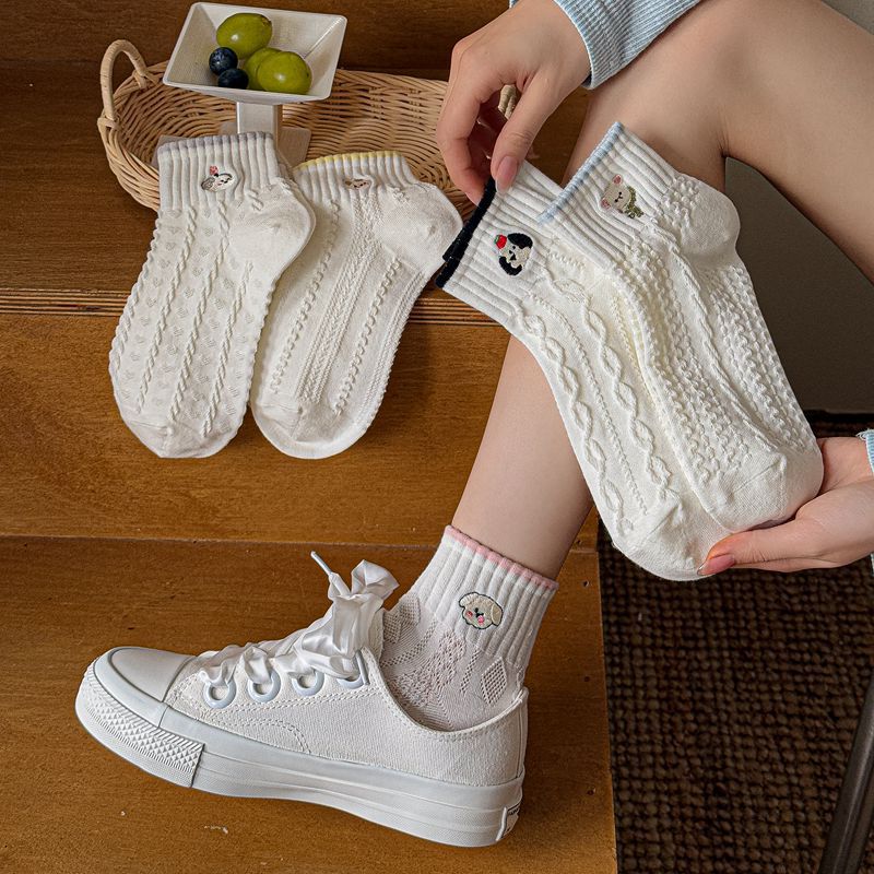 2025 년 봄과 여름 새로운 작은 차 생명 양말 아카데미 스타일 자수 코튼 화이트 양말 Ins 스타일 보트 양말