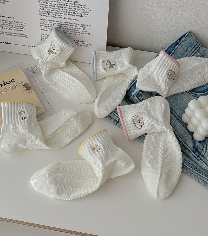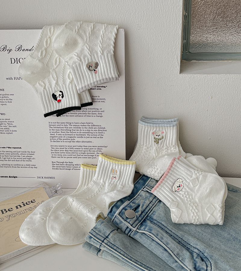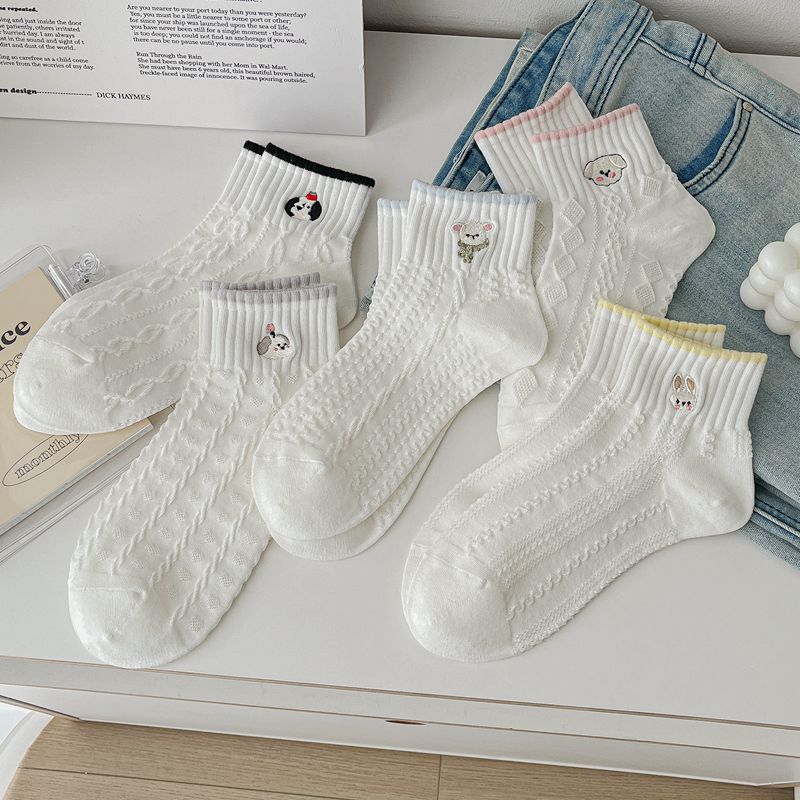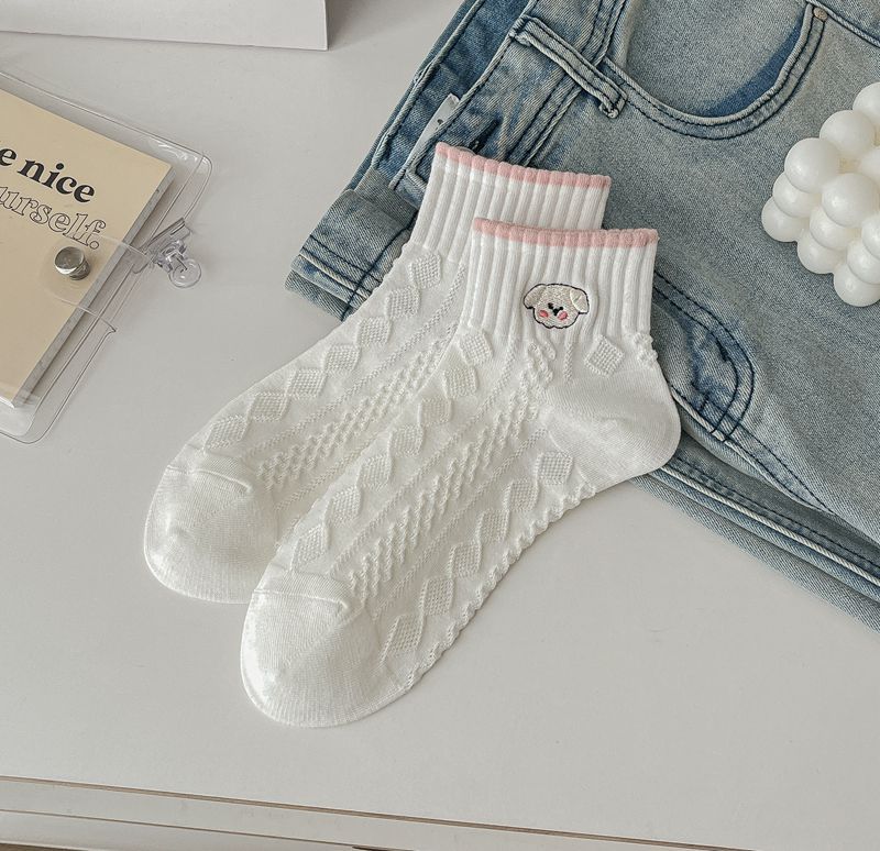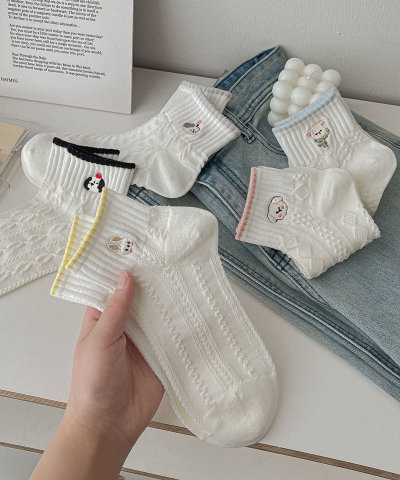 2025 년 봄과 여름 새로운 작은 차 생명 양말 아카데미 스타일 자수 코튼 화이트 양말 Ins 스타일 보트 양말