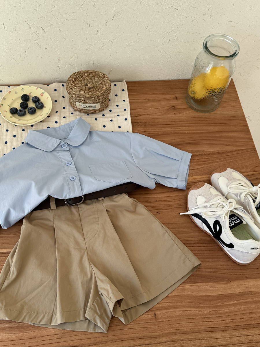 남학생과 여학생을 위한 환불 및 교환 불가 여름 한국식 대학 스타일 랜턴 슬리브 탑 아동용 JK 반팔 셔츠 하늘색 안감스토어 가기