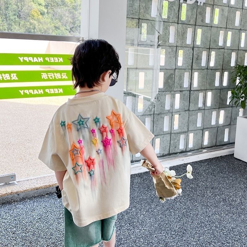 아동용 반팔 티셔츠 여름 새 스타일 소년 바닥 스타일 2025 슈퍼 쿨 100% 코튼 탑 반팔 티셔츠스토어 가기