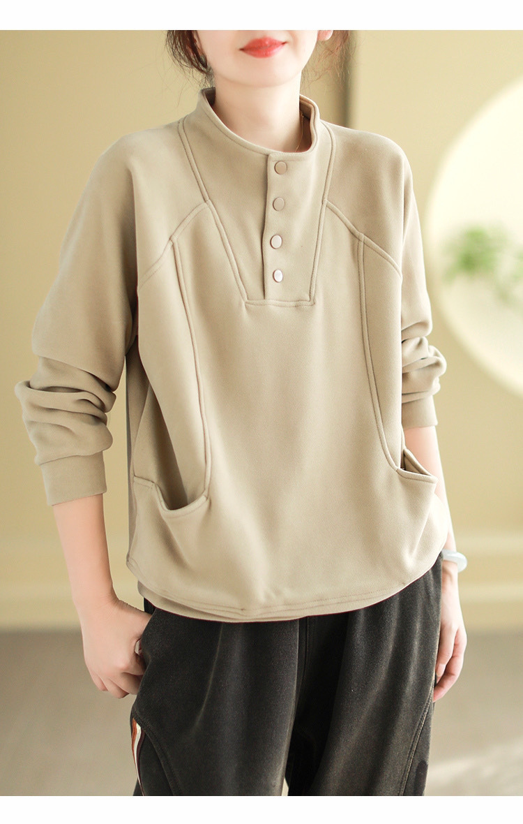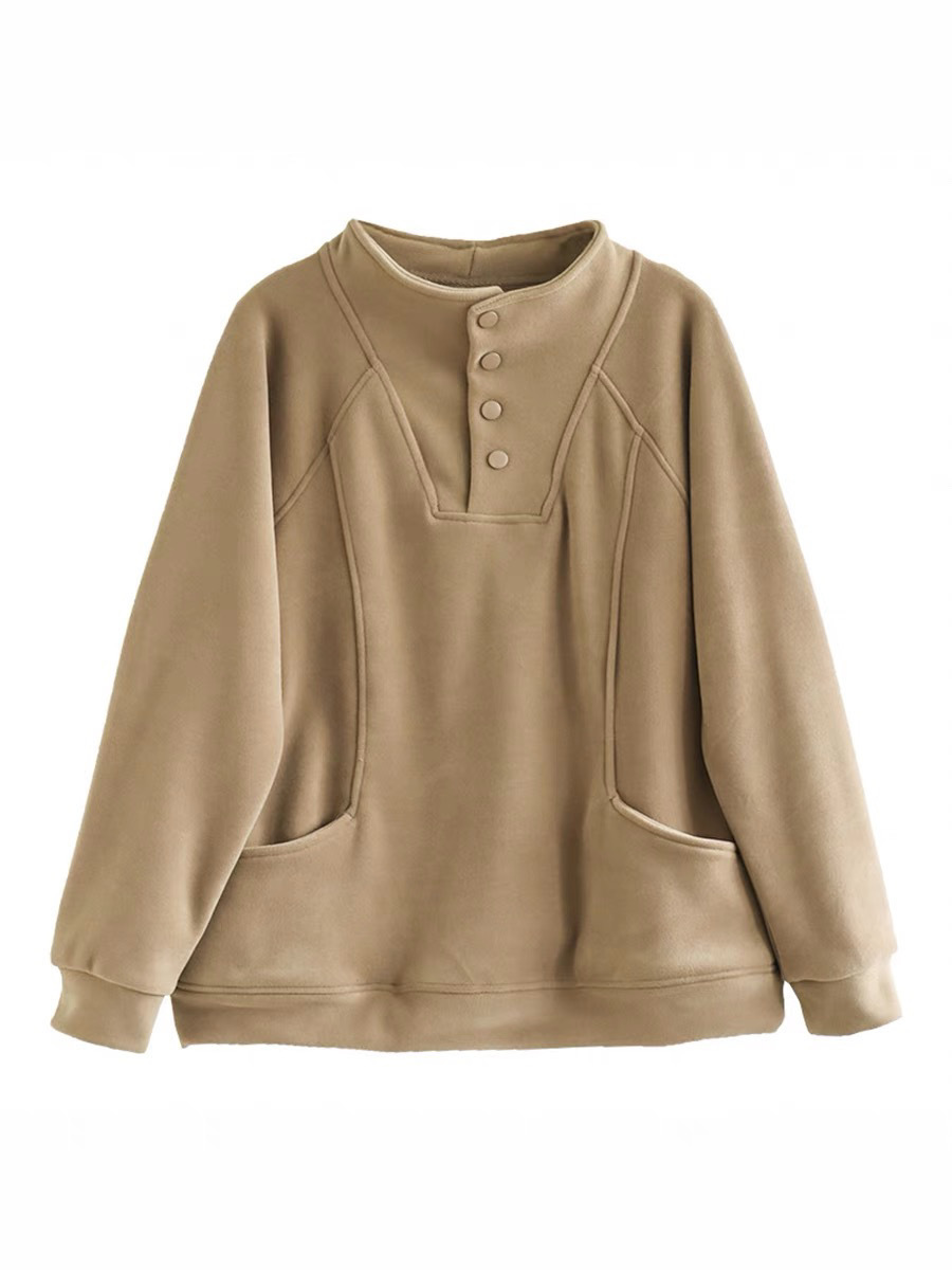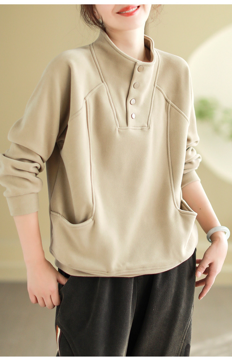 벨벳 하프 하이 칼라 버튼 따뜻한 스웨터 여성의 느슨한 한국 스타일 고기 커버 모든 경기 디자인 센스 포켓 스티칭 탑 트렌디