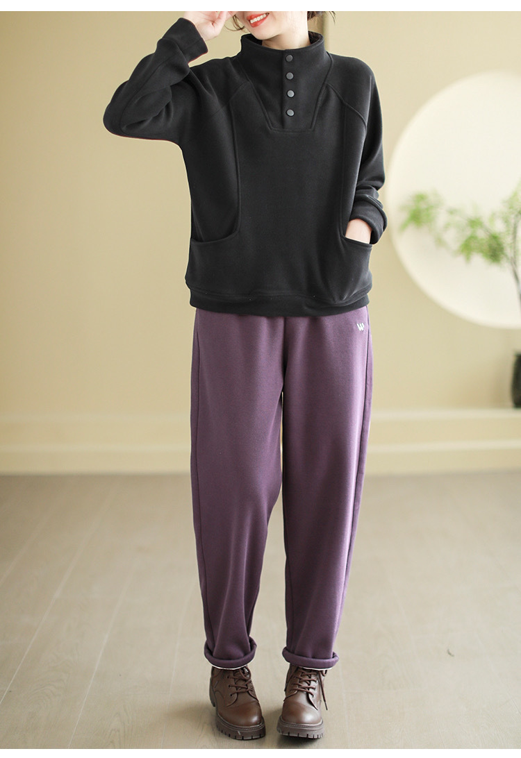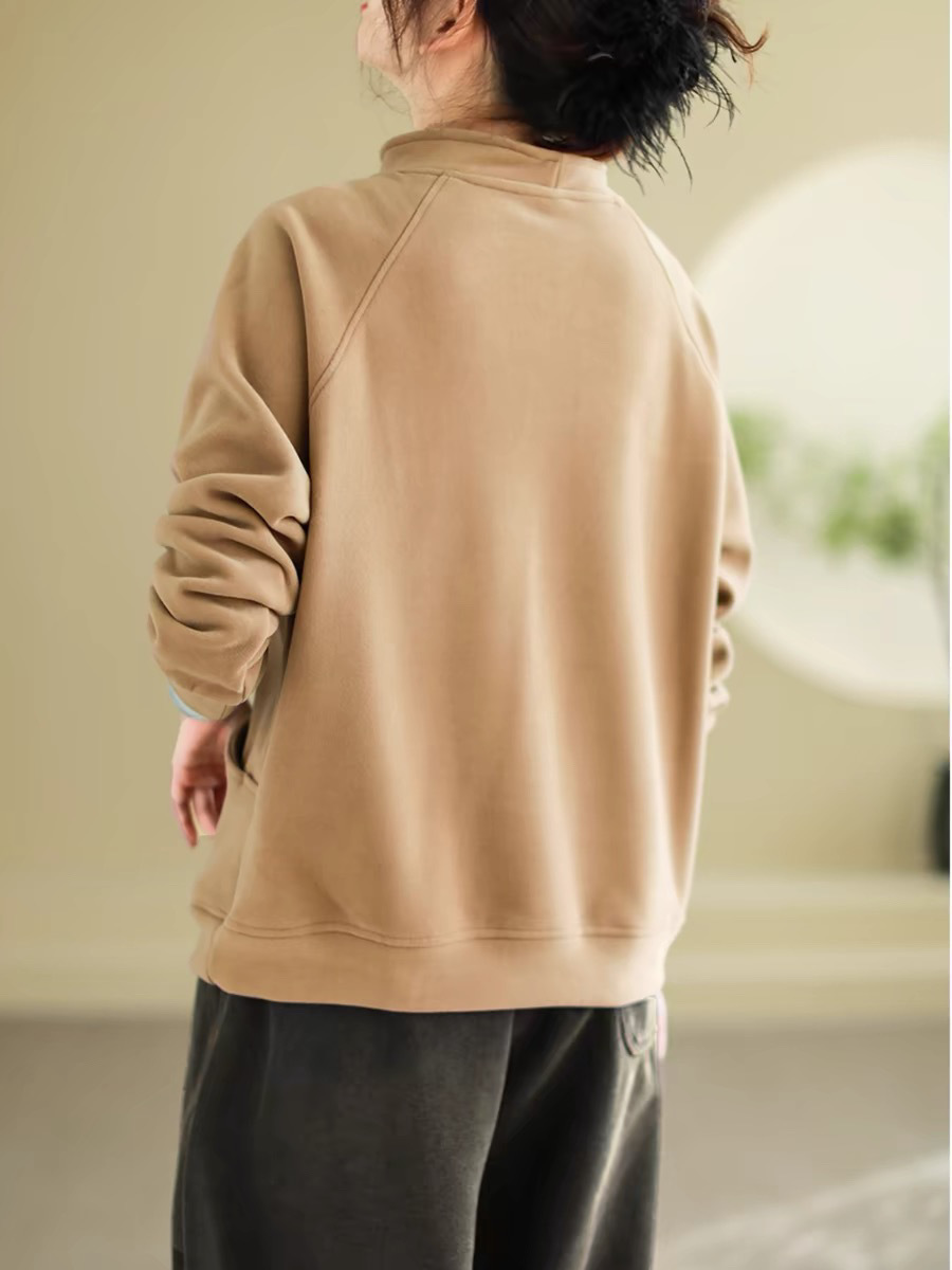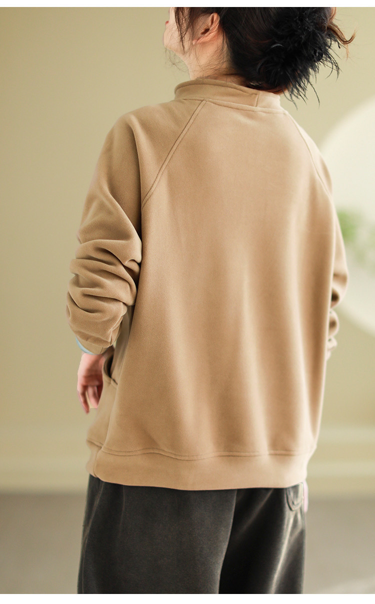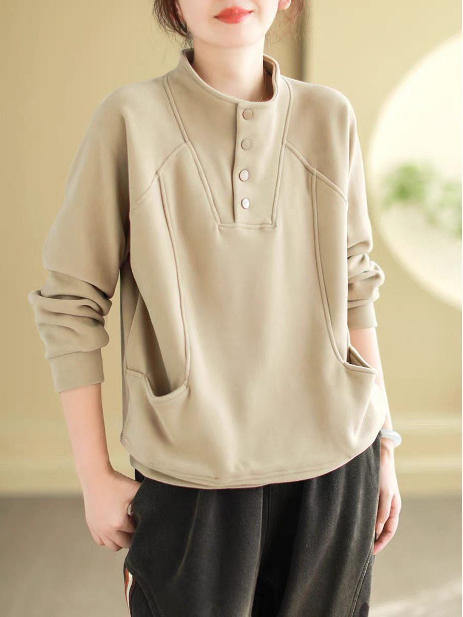 벨벳 하프 하이 칼라 버튼 따뜻한 스웨터 여성의 느슨한 한국 스타일 고기 커버 모든 경기 디자인 센스 포켓 스티칭 탑 트렌디