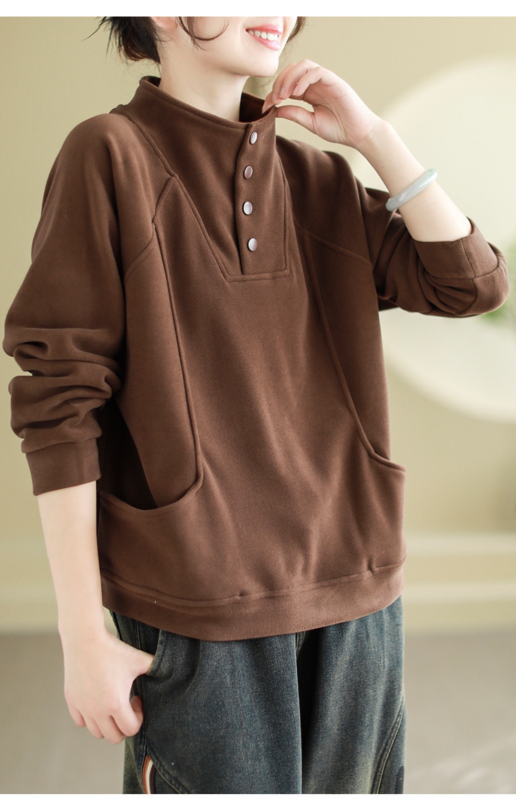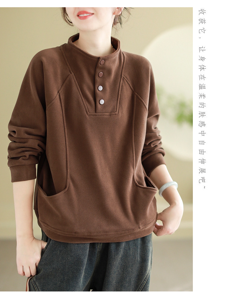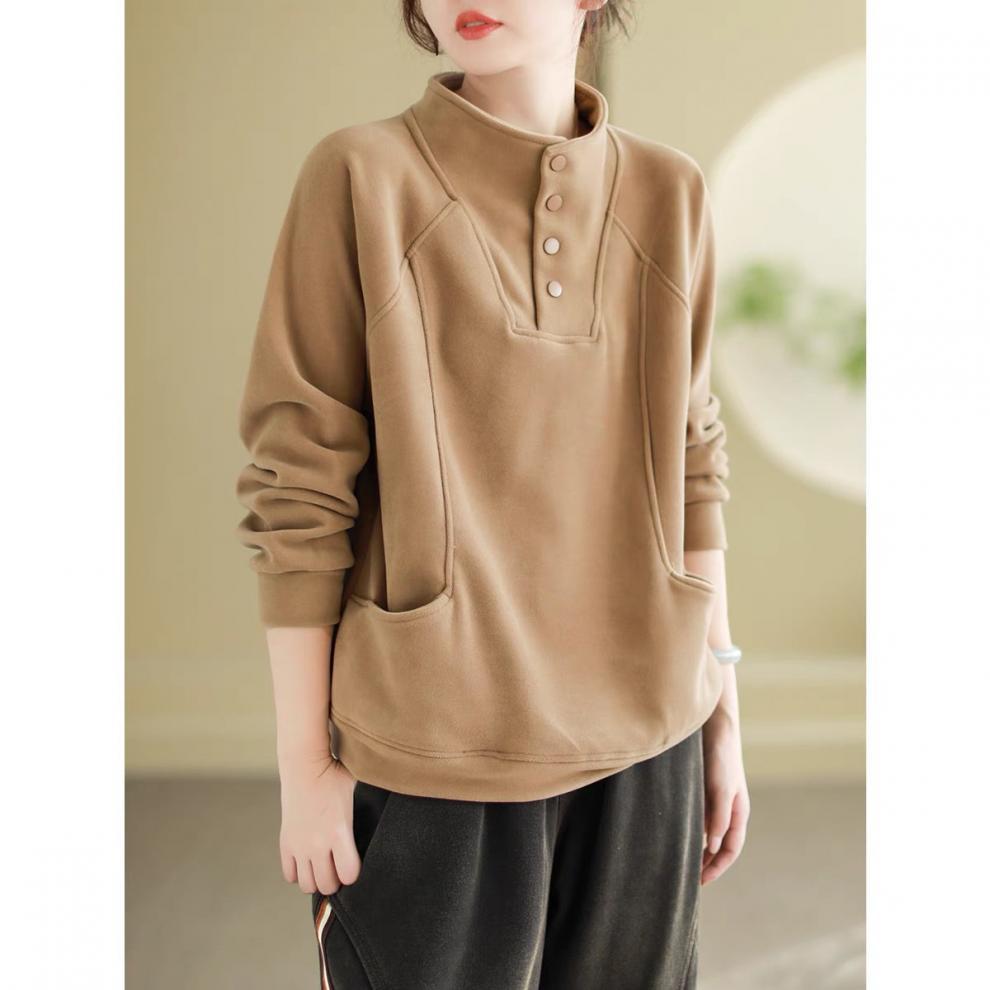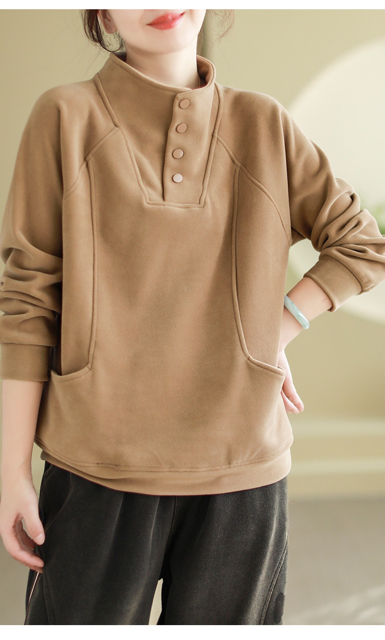 벨벳 하프 하이 칼라 버튼 따뜻한 스웨터 여성의 느슨한 한국 스타일 고기 커버 모든 경기 디자인 센스 포켓 스티칭 탑 트렌디스토어 가기