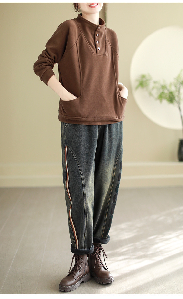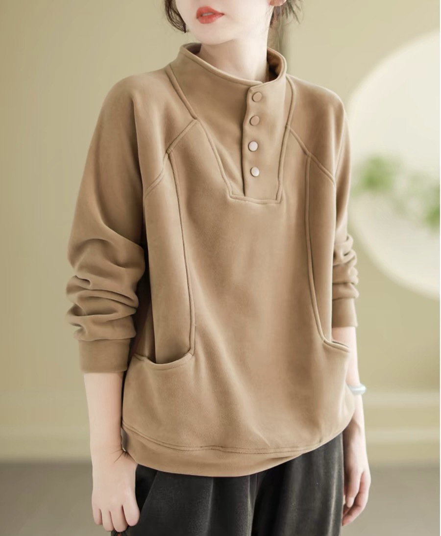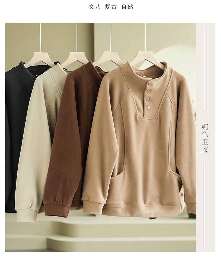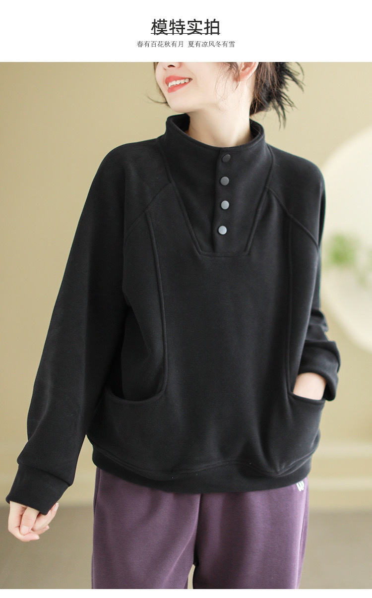 벨벳 하프 하이 칼라 버튼 따뜻한 스웨터 여성의 느슨한 한국 스타일 고기 커버 모든 경기 디자인 센스 포켓 스티칭 탑 트렌디스토어 가기