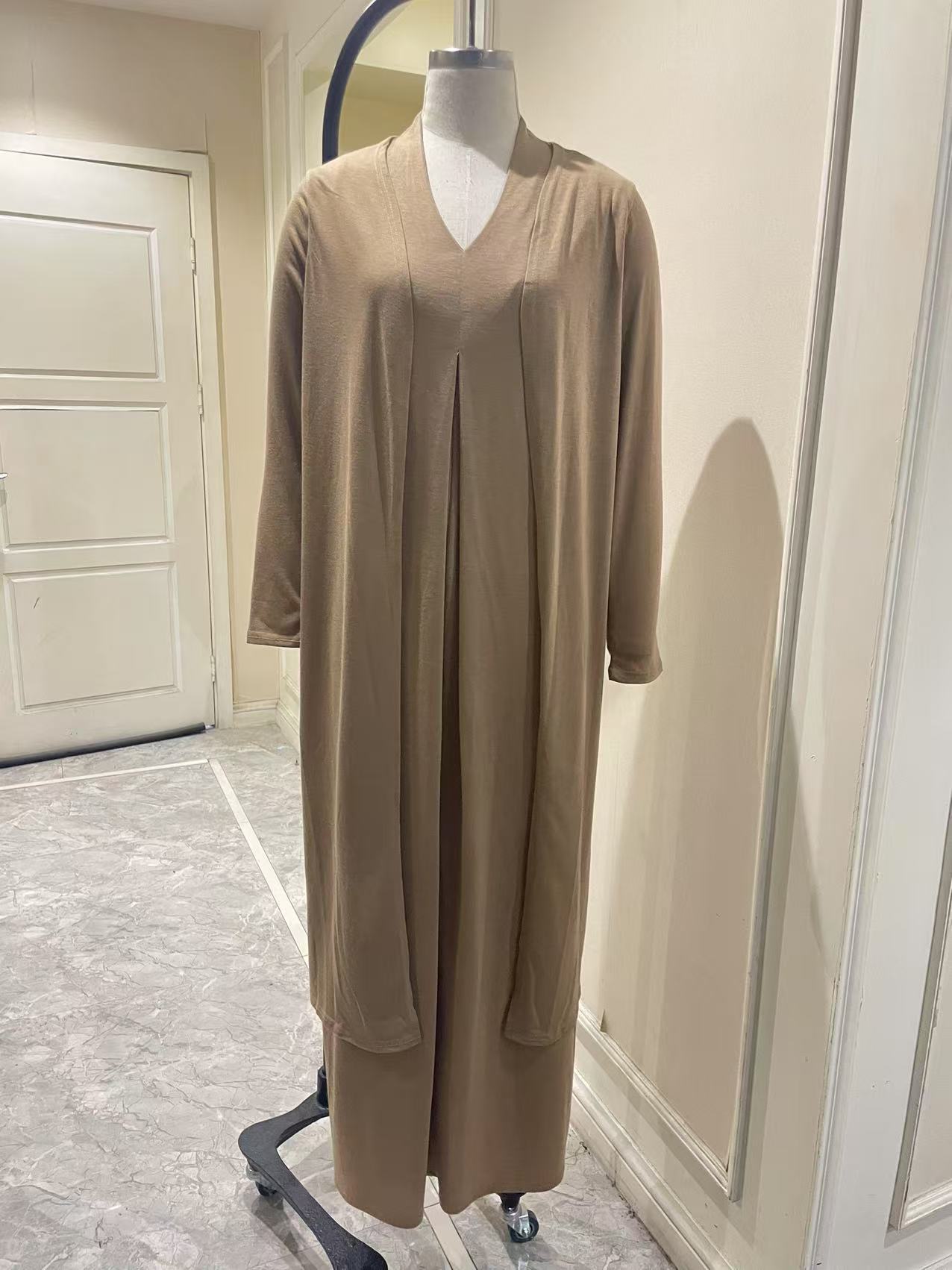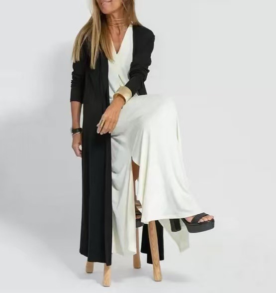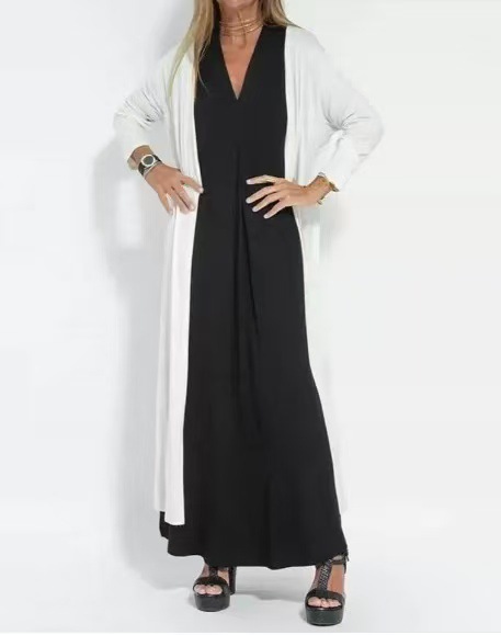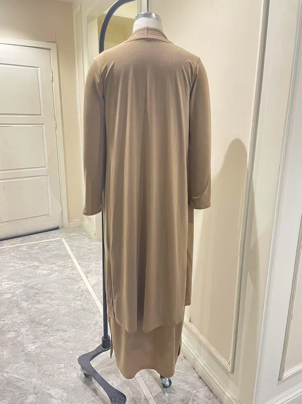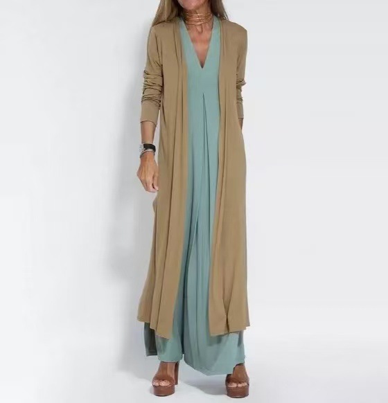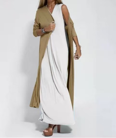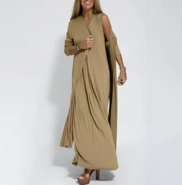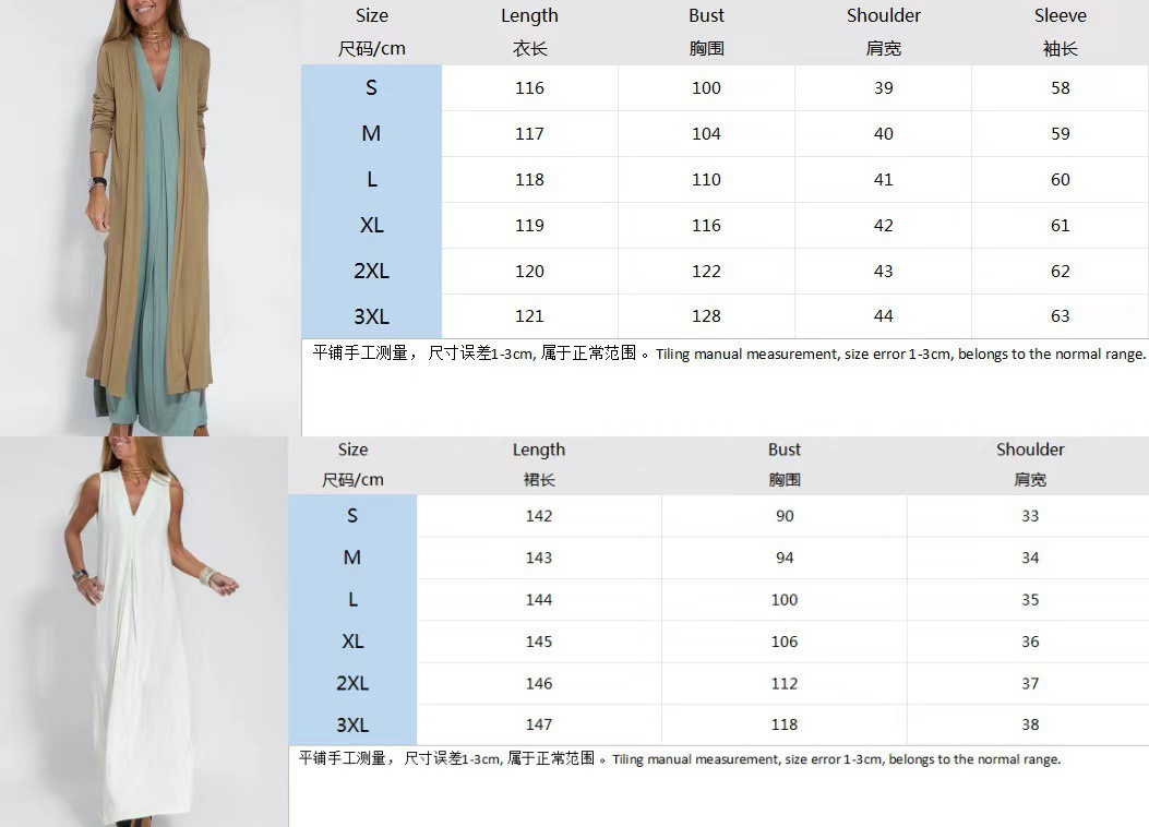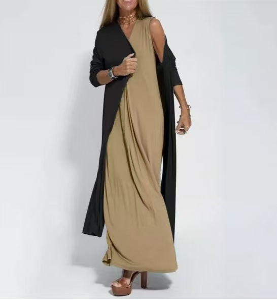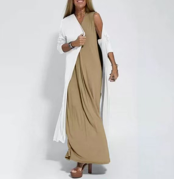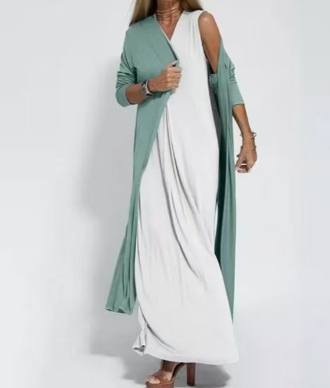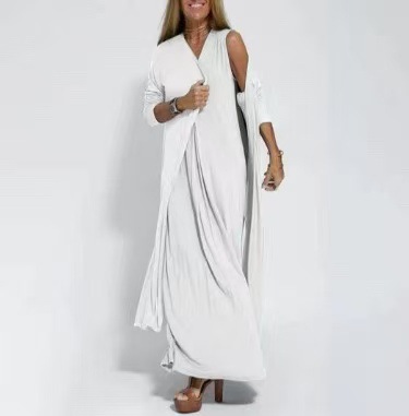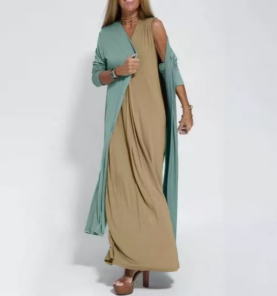 2024 국경을 넘는 유럽과 미국 여성의 대외 무역 아마존 단색 풀오버 V 넥 민소매 원피스 카디건 코트 세트