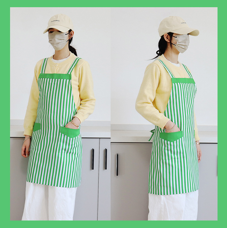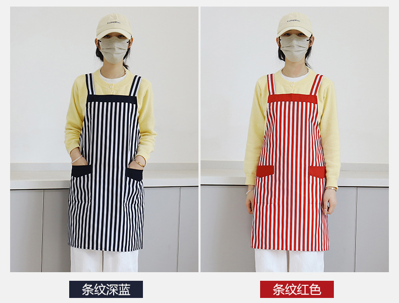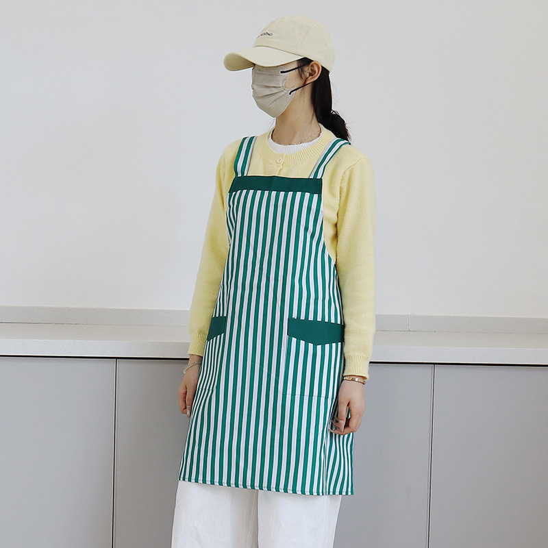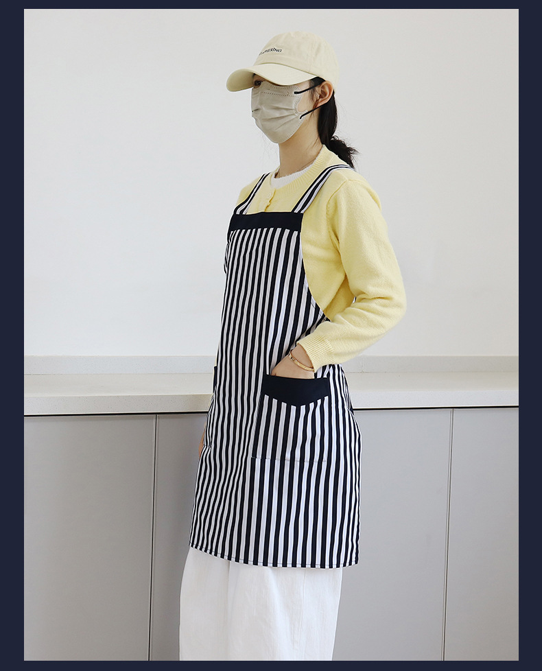 아마존 폴리에스테르 줄무늬 앞치마 맞춤 로고 어깨 끈 한국식 커피 숍 작업 옷 홈 주방 앞치마스토어 가기