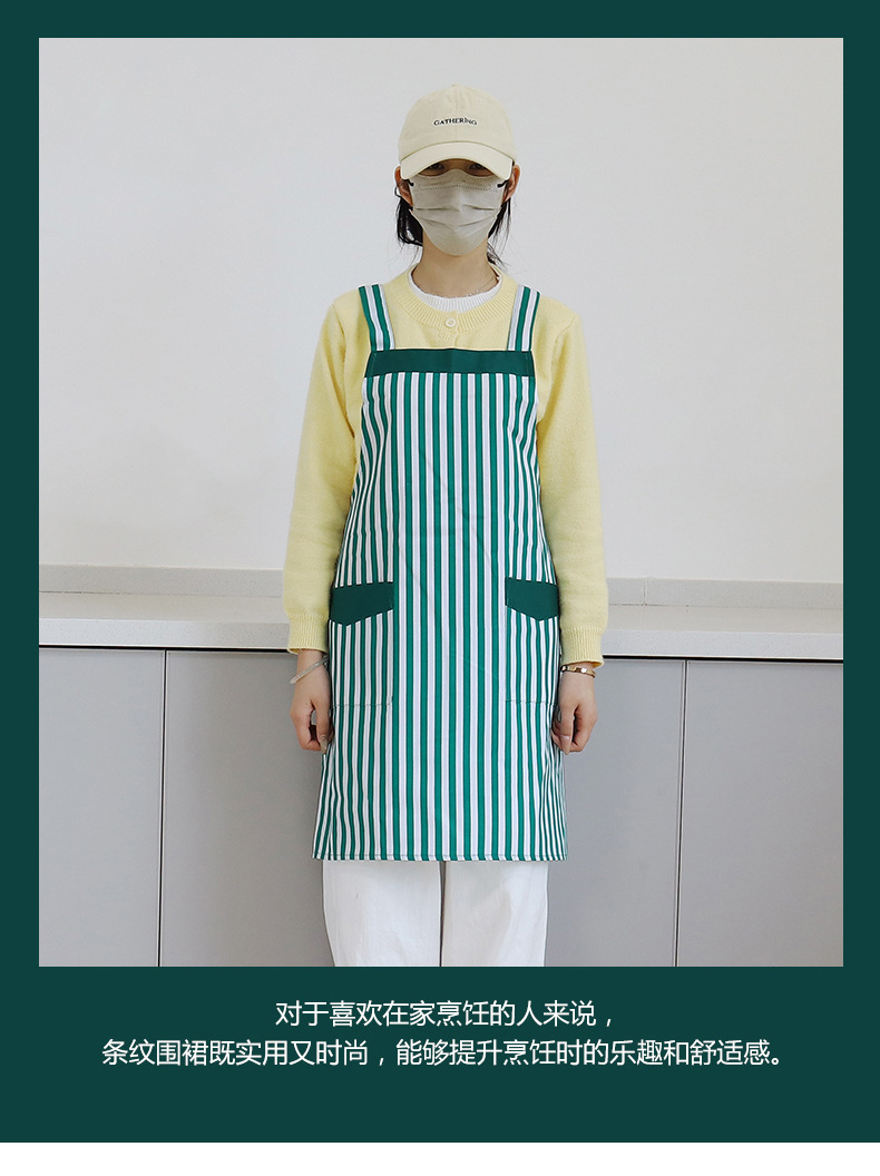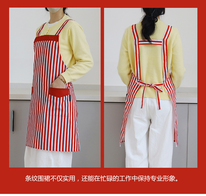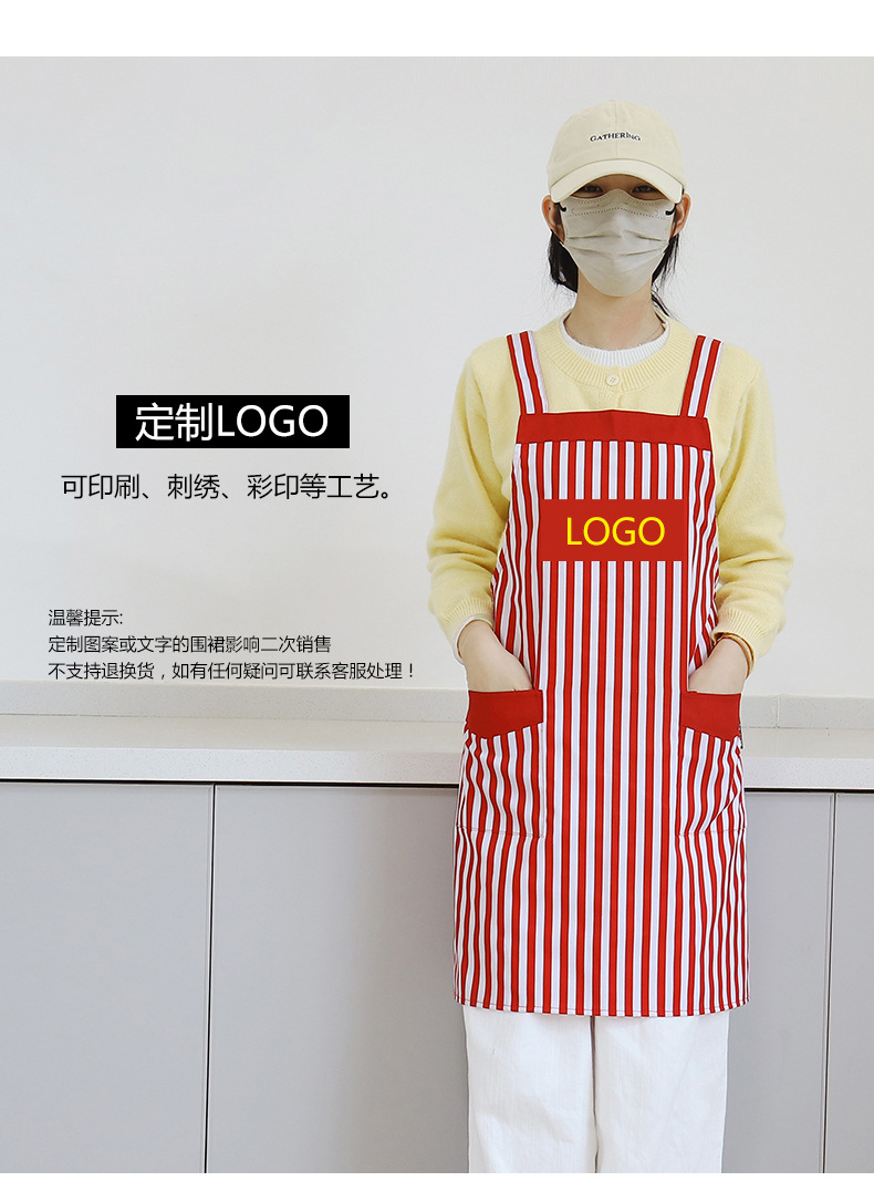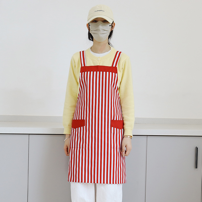아마존 폴리에스테르 줄무늬 앞치마 맞춤 로고 어깨 끈 한국식 커피 숍 작업 옷 홈 주방 앞치마
