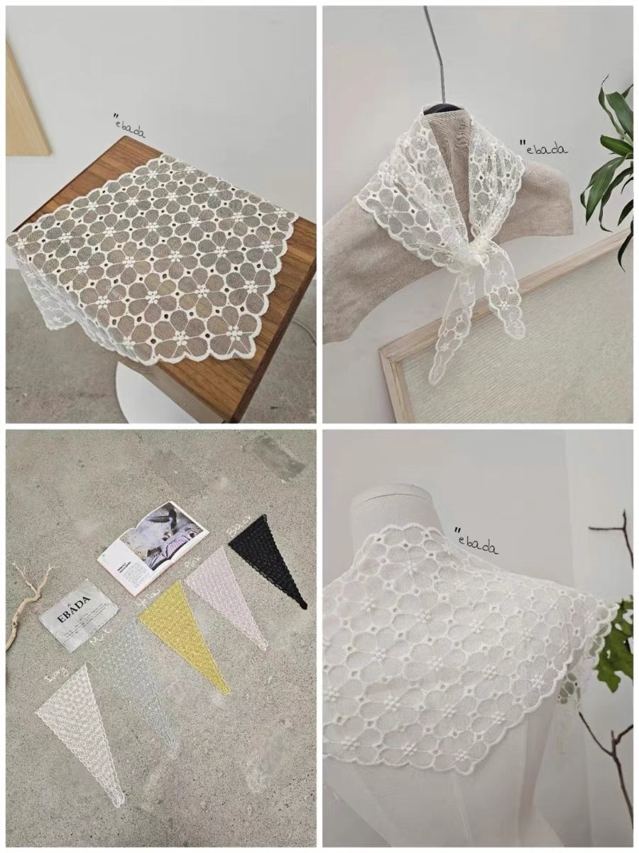 한국 동대문 오리지널 싱글 에바다 뉴 스타일 레이스 패턴 작은 스카프 여자 올 매치 웨스턴 스타일 Ins 한국 솔리드 컬러 버전스토어 가기