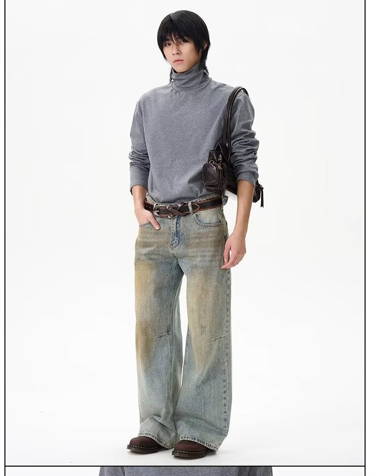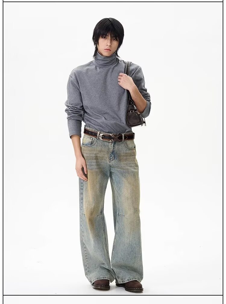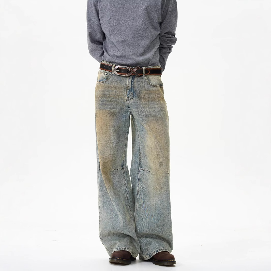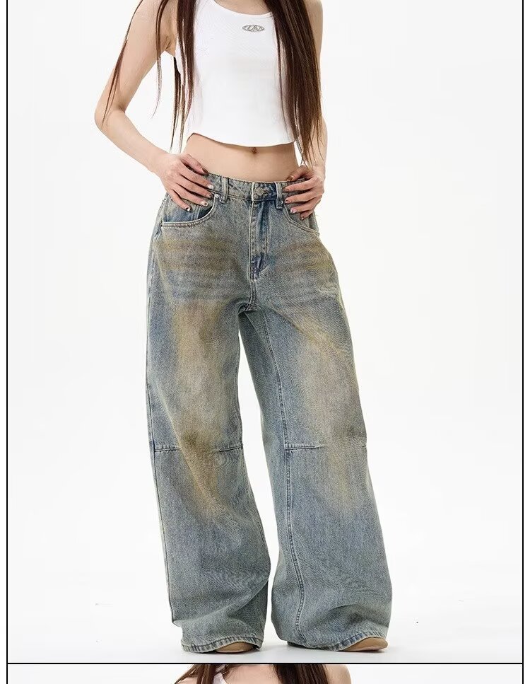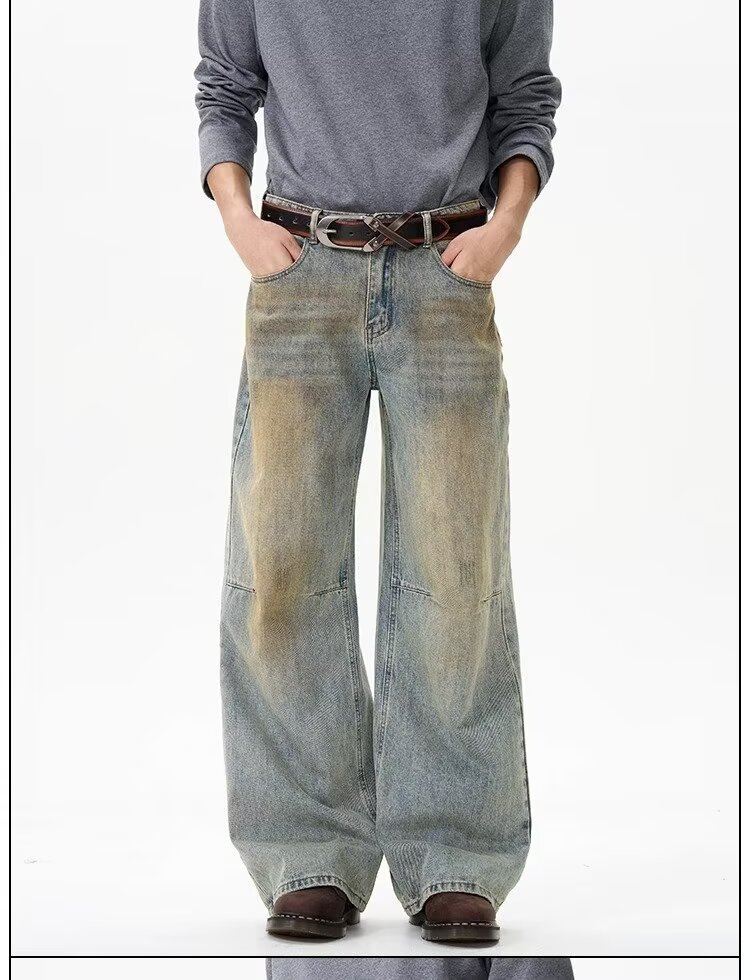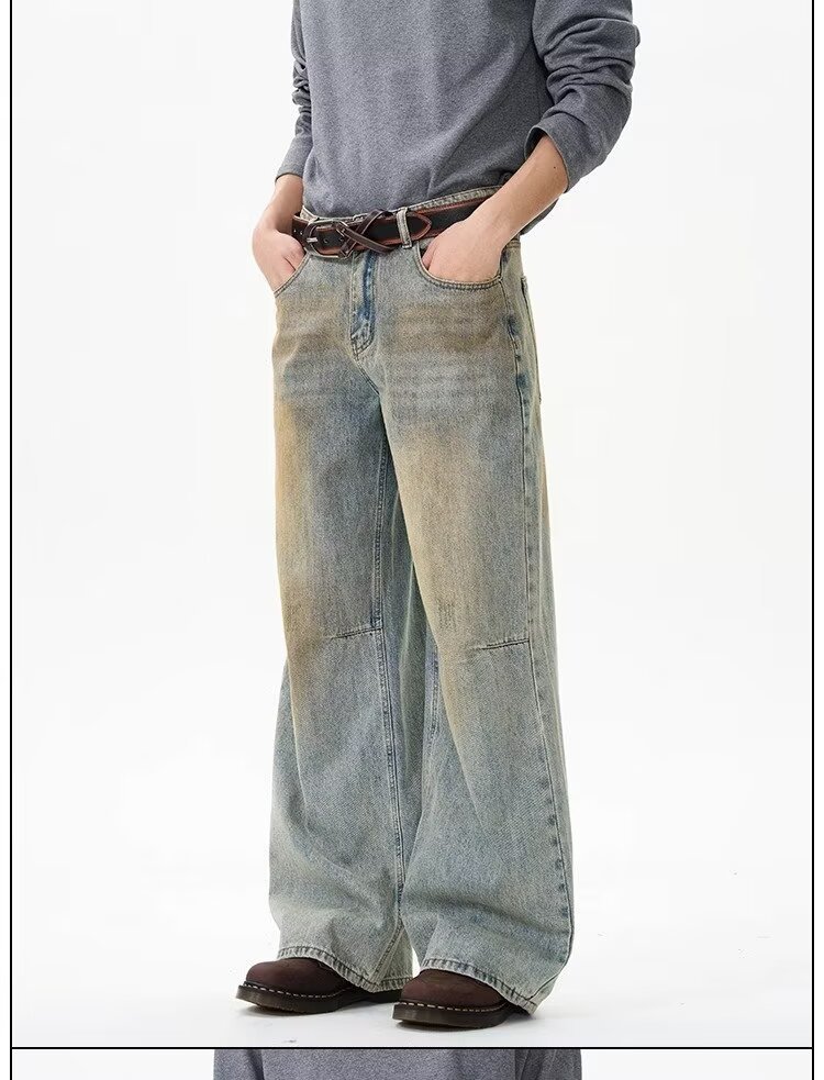 2025 레트로 느슨한 넓은 다리 트렌디 팬츠를 가진 남성과 여성을위한 더러운 염색 된 오래된 직선 청바지스토어 가기