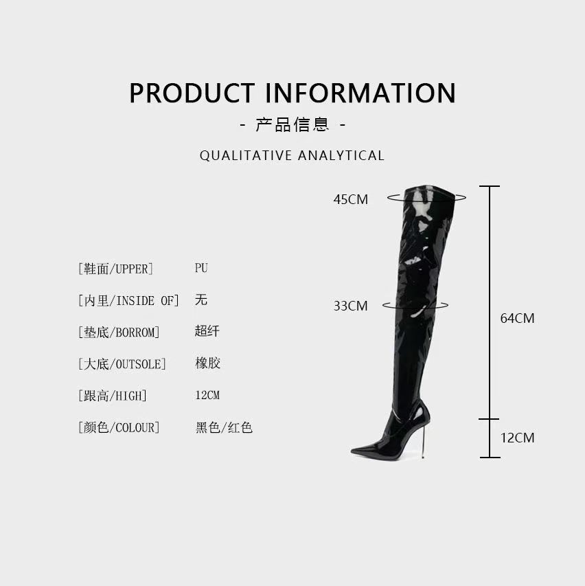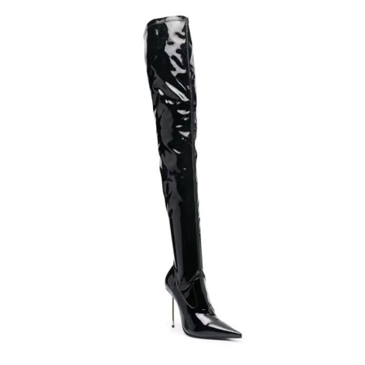 2025 유럽 및 미국 스타일 수출용 뾰족코 얇은 굽 하이힐 무릎 위 롱부츠 대형 사이즈 패션쇼 롱부츠 여성용 유럽 및 미국 인기 상품스토어 가기