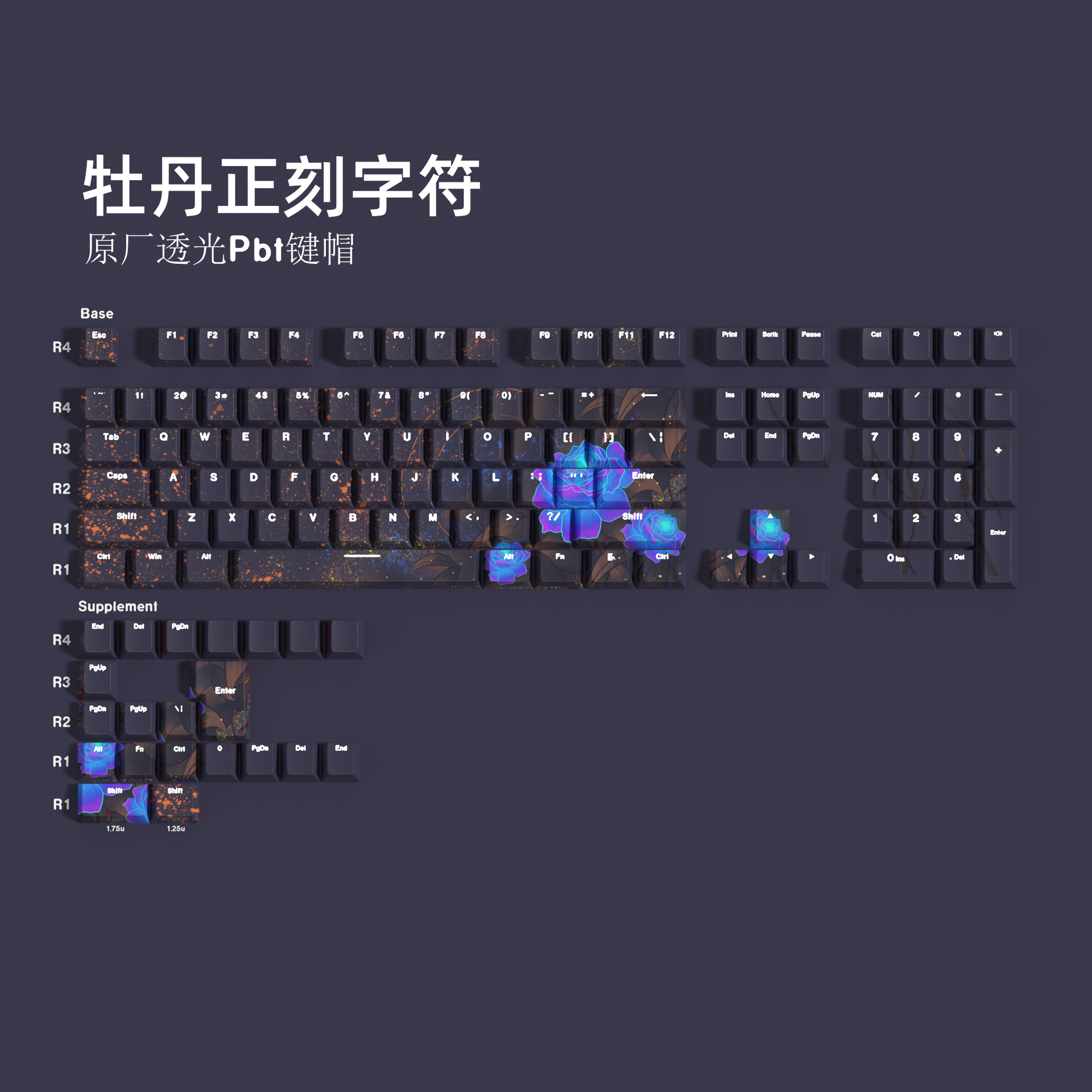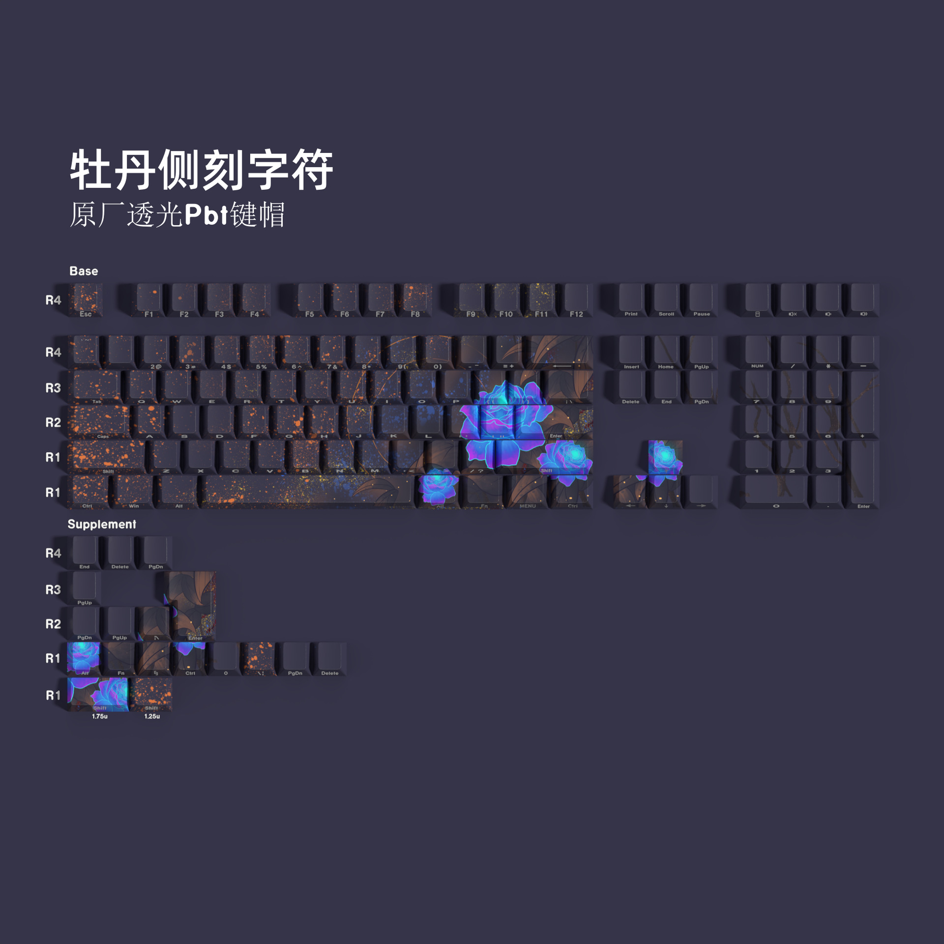 JCM Peony Guofeng 키 캡 새겨진 투명 문자 132 키 박스 대형 풀 세트 기계 키보드 캡스토어 가기