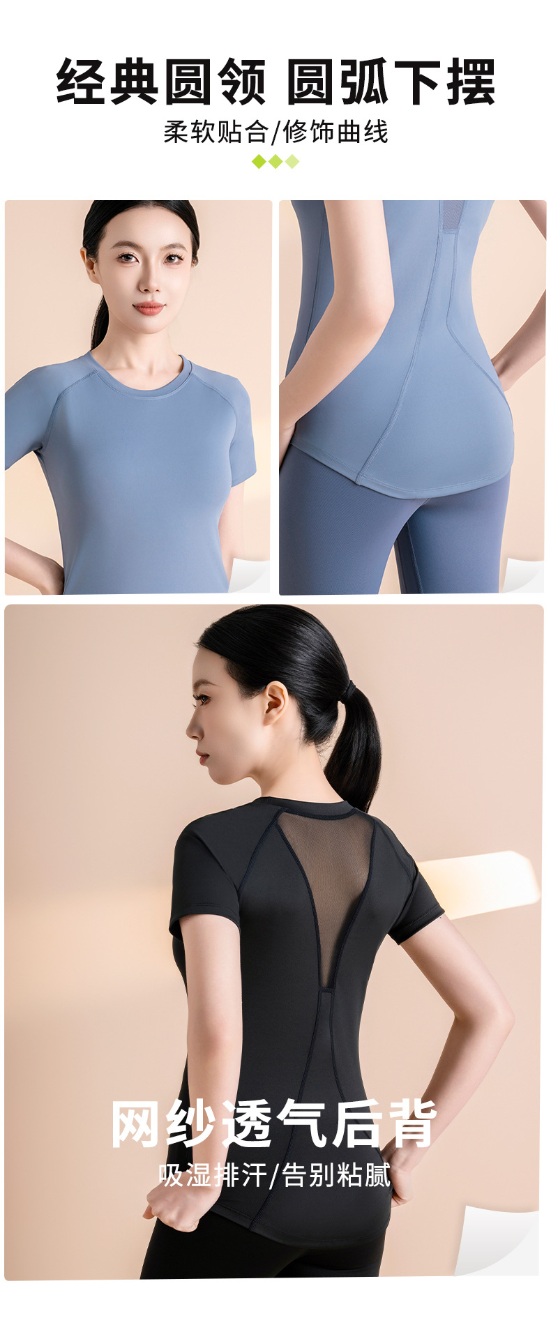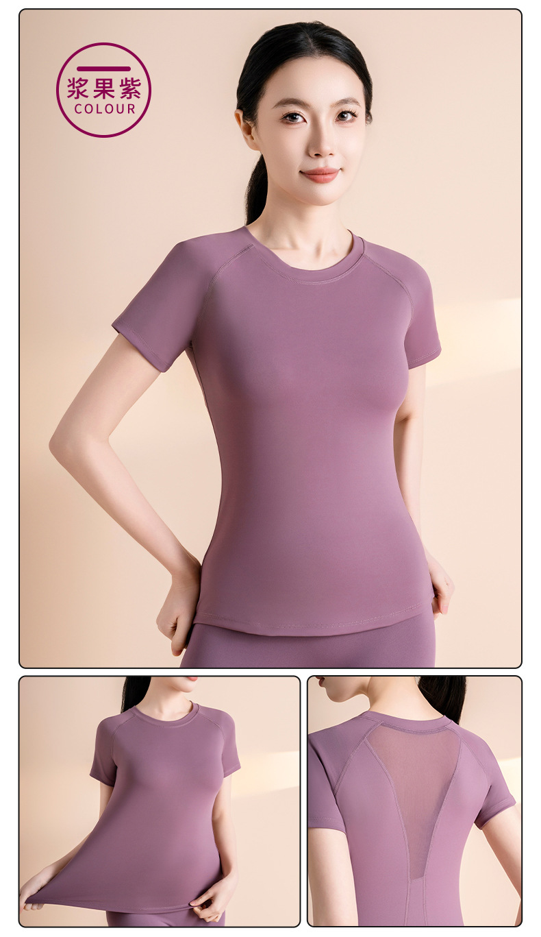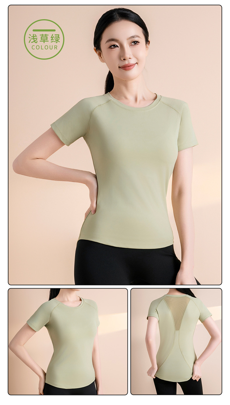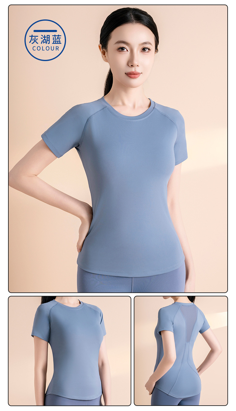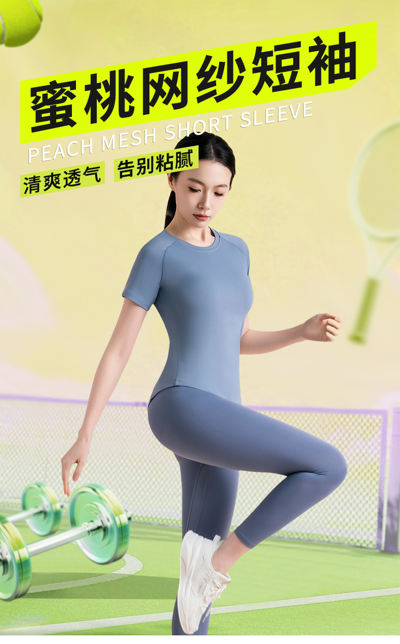 메쉬 반팔 스포츠 피트니스 요가 세트 가슴 모양 통기성 슬림 핏 빠른 건조 스포츠 티셔츠 여성용 탑