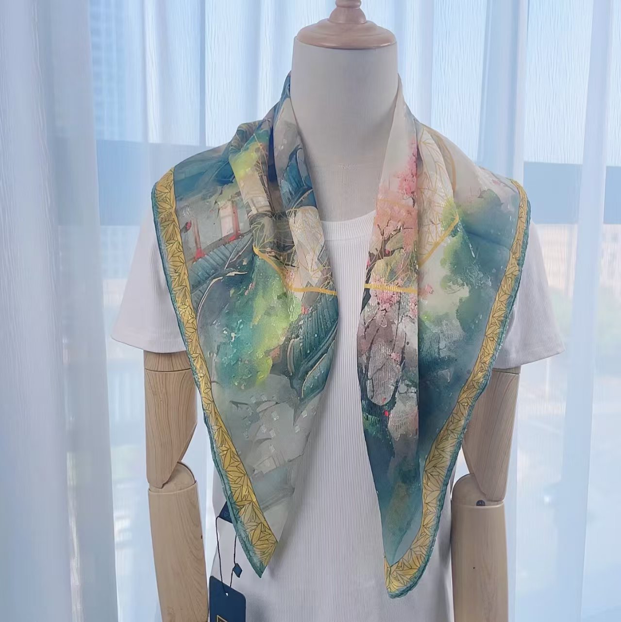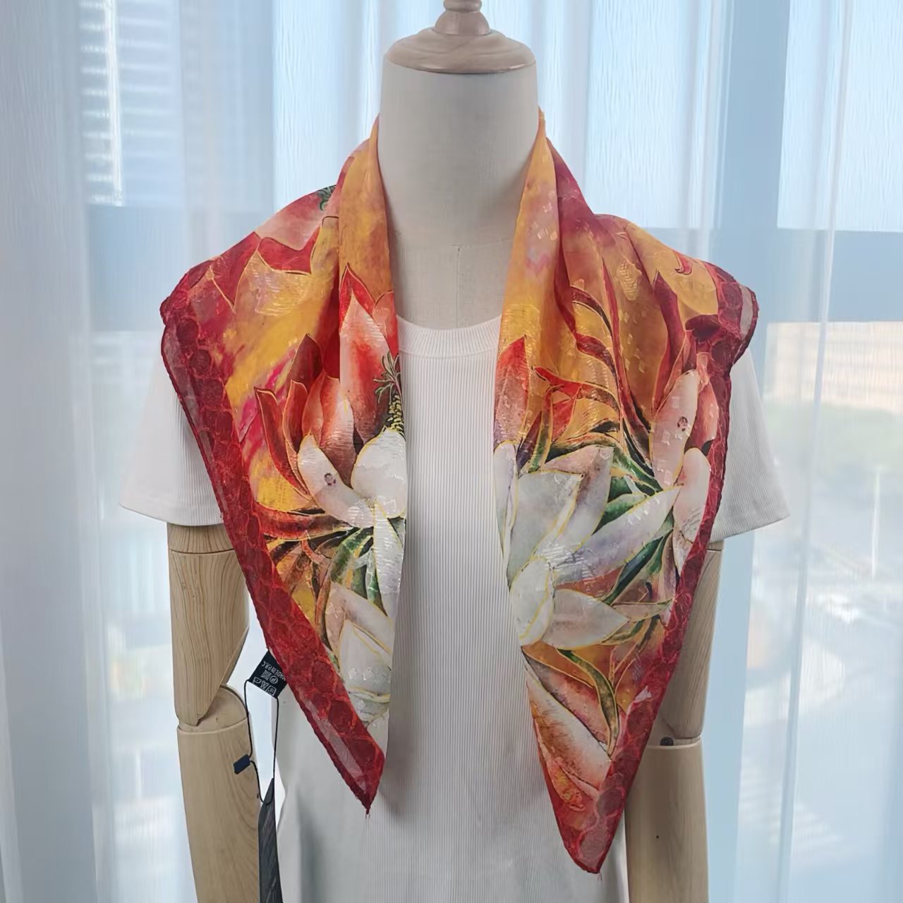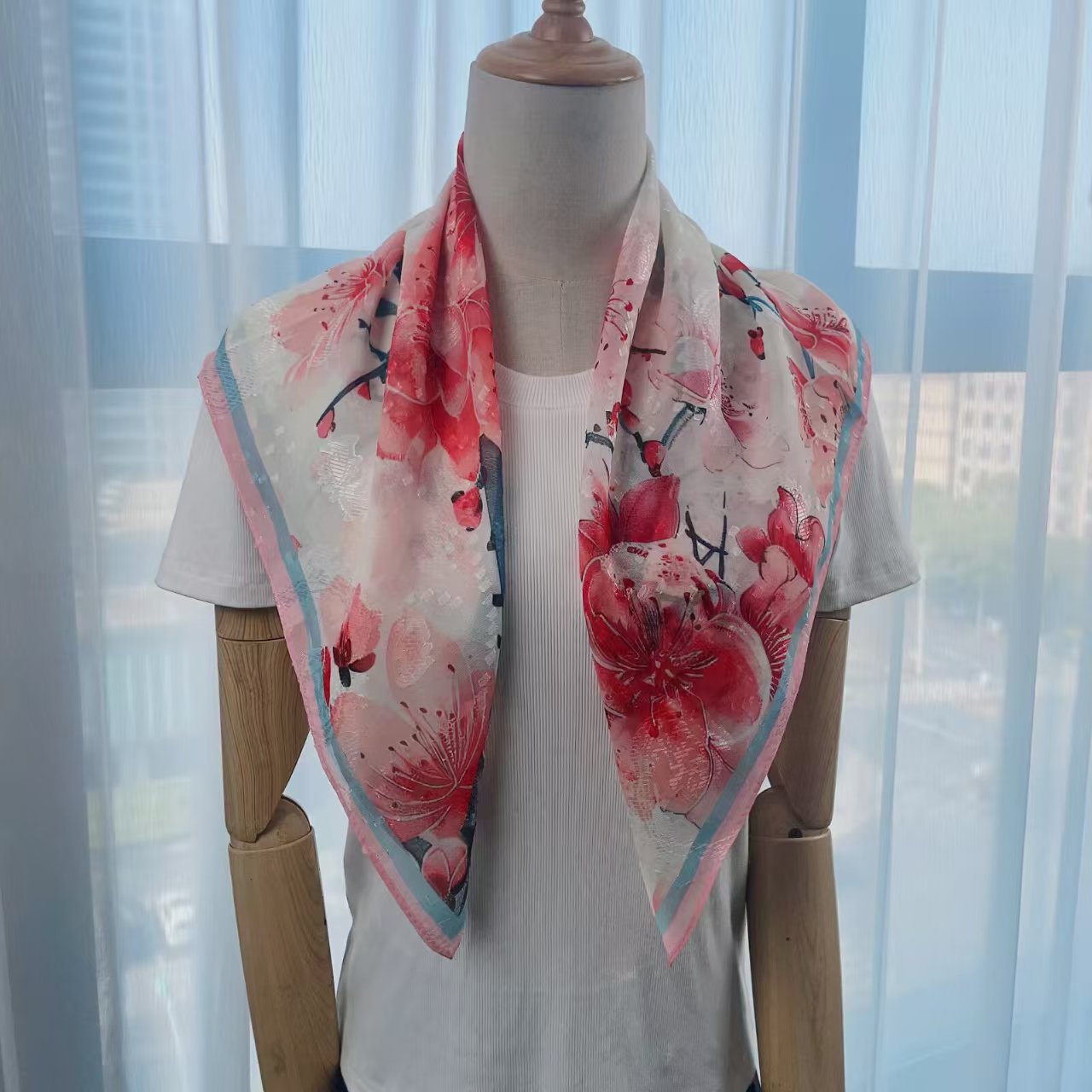 여름 국가 스타일 컷 꽃 70cm 고급 스퀘어 스카프 얇은 패션 인쇄 여성의 햇빛 선크림 스카프 전문 스카프스토어 가기