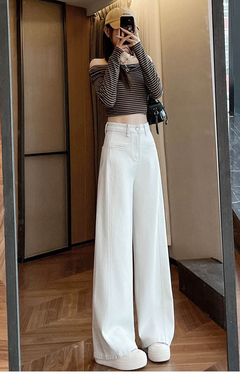 3363 화이트 청바지 여성 리얼 샷 느슨한 스트레이트 하이 웨이스트 드깅 넓은 다리 데님 여성 바지 고기와 슬리밍 여성 의류스토어 가기