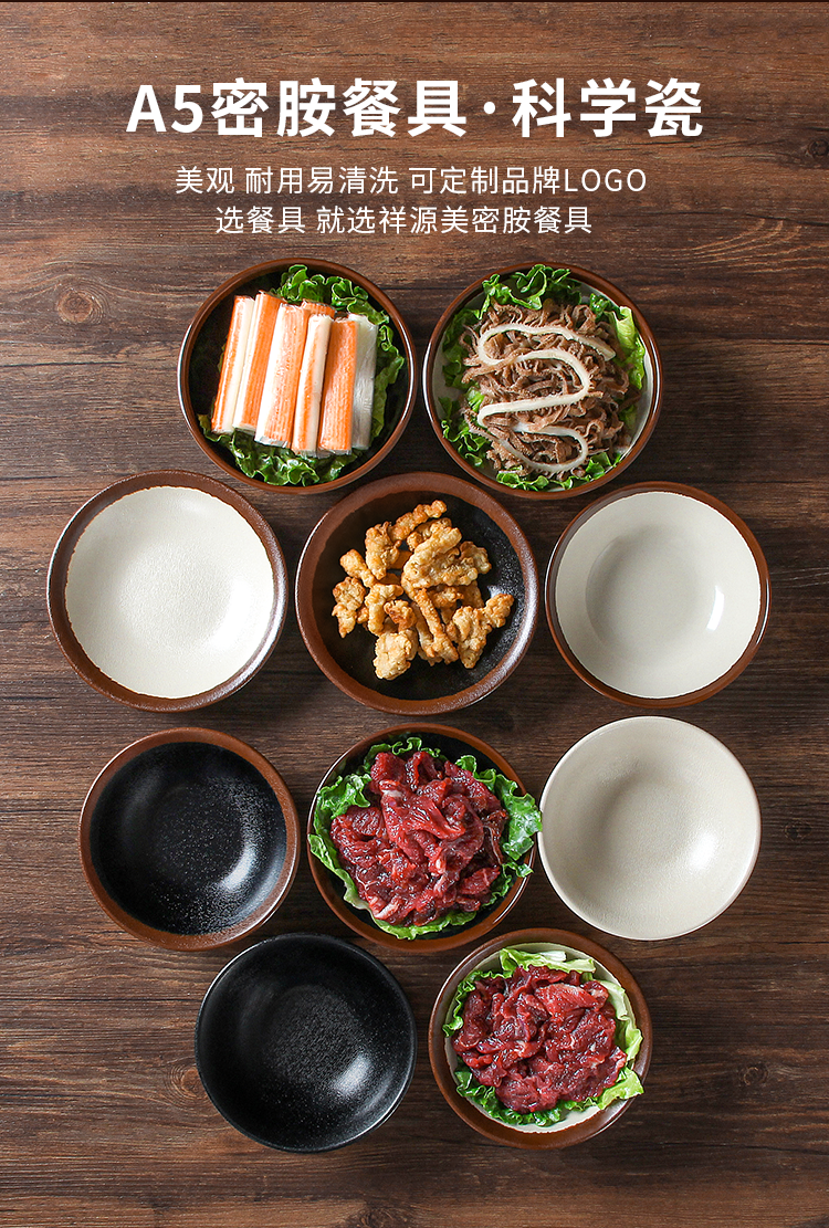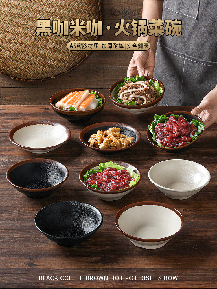 멜라민 식기 세트 창조적 인 모조 도자기 냄비 가게 기름 접시 그릇 조미료 전송 플라스틱 작은 그릇 상업 그릇 밥 그릇