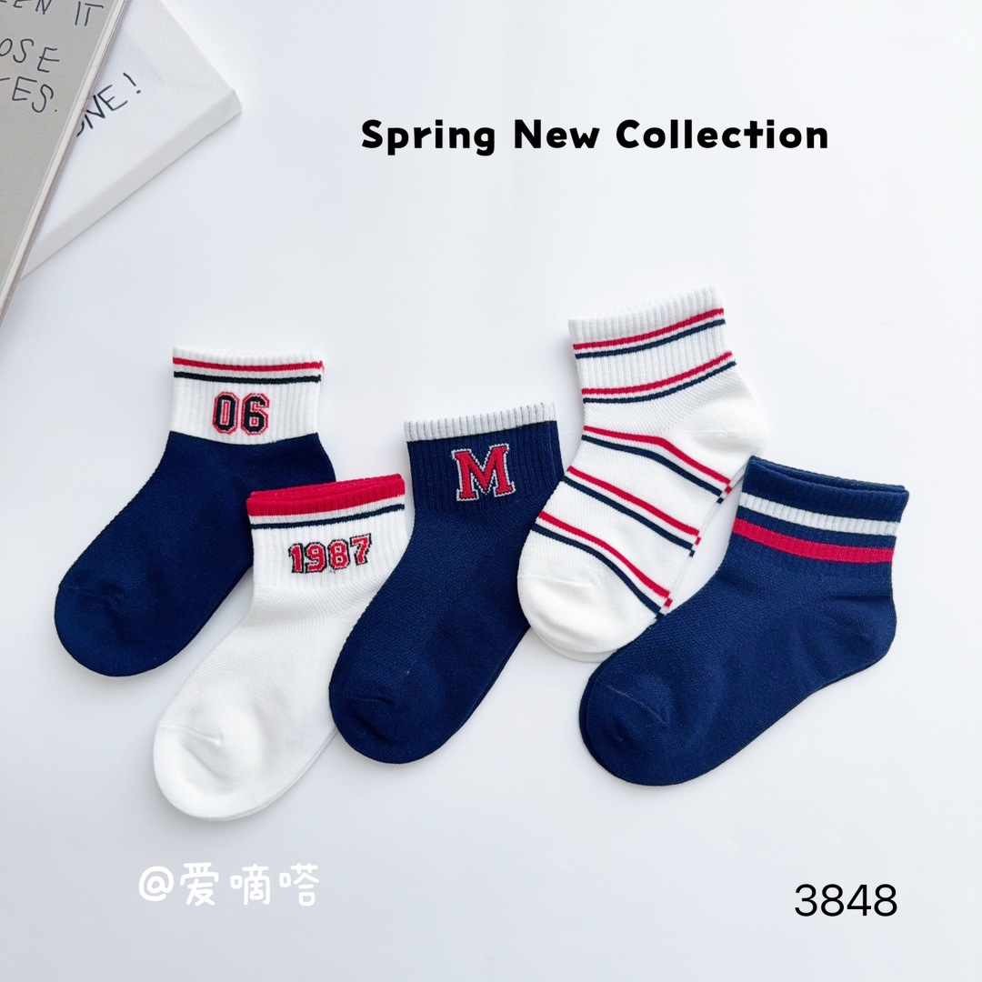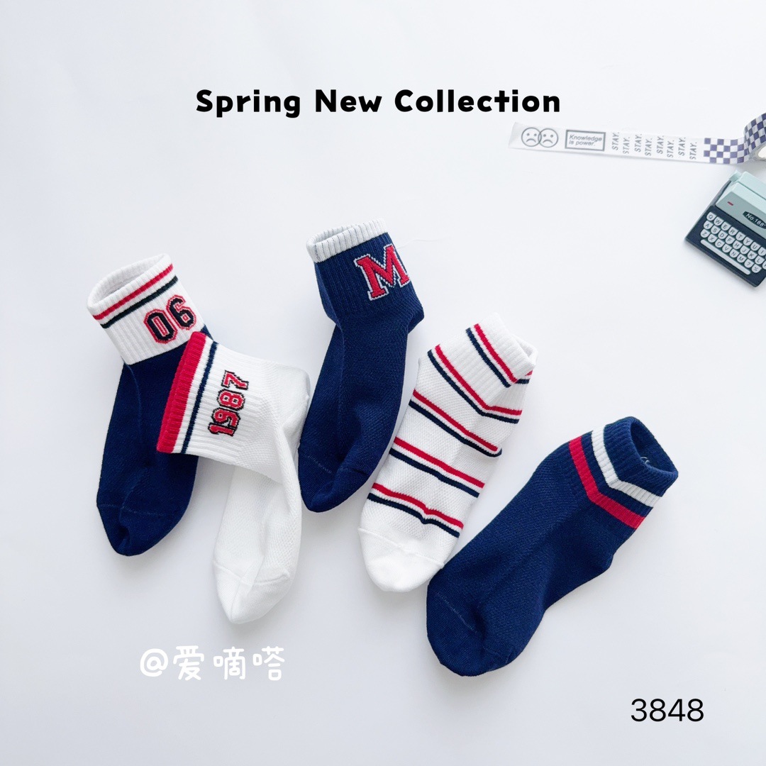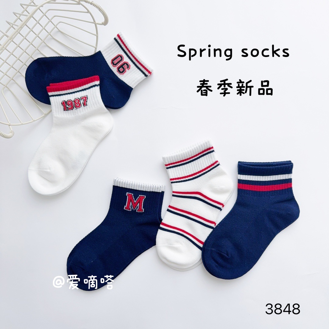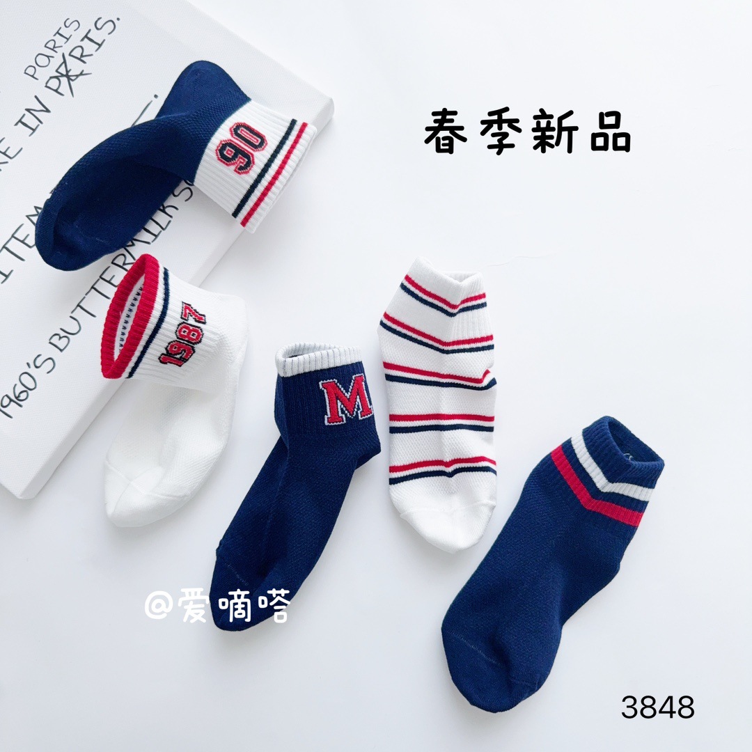 사랑 진드기 어린이 양말 봄과 여름 새로운 빗질면 만화 편지 소년 반 그물 짧은 튜브 양말 학생 양말 한국어 버전