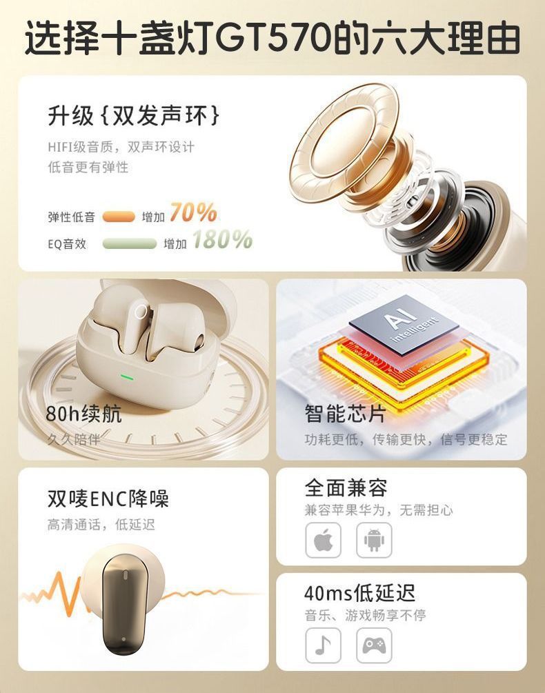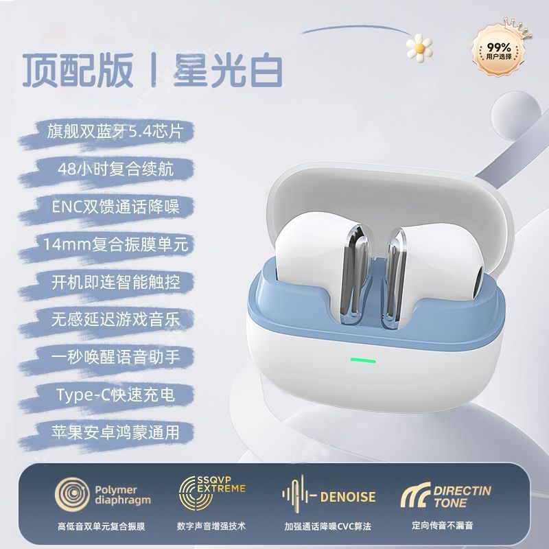 • 흰색 + 전기 도금 [블루투스 5.4 + 매우 긴 배터리 수명 + 소음 감소 고화질 통화 + 지능형 AI 음성]