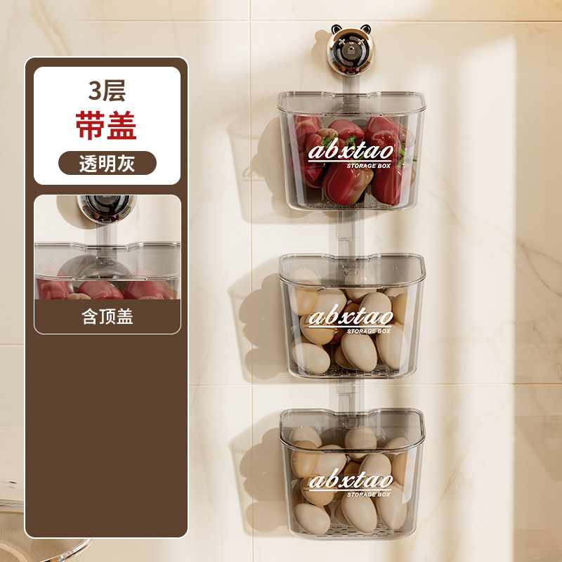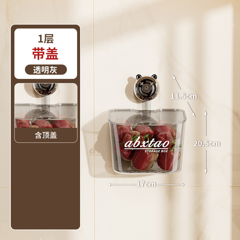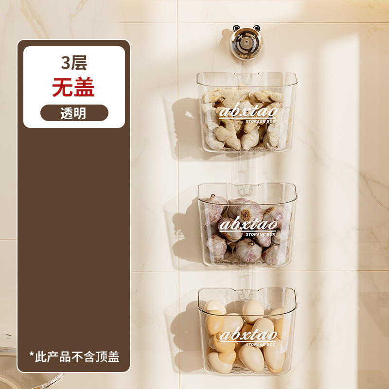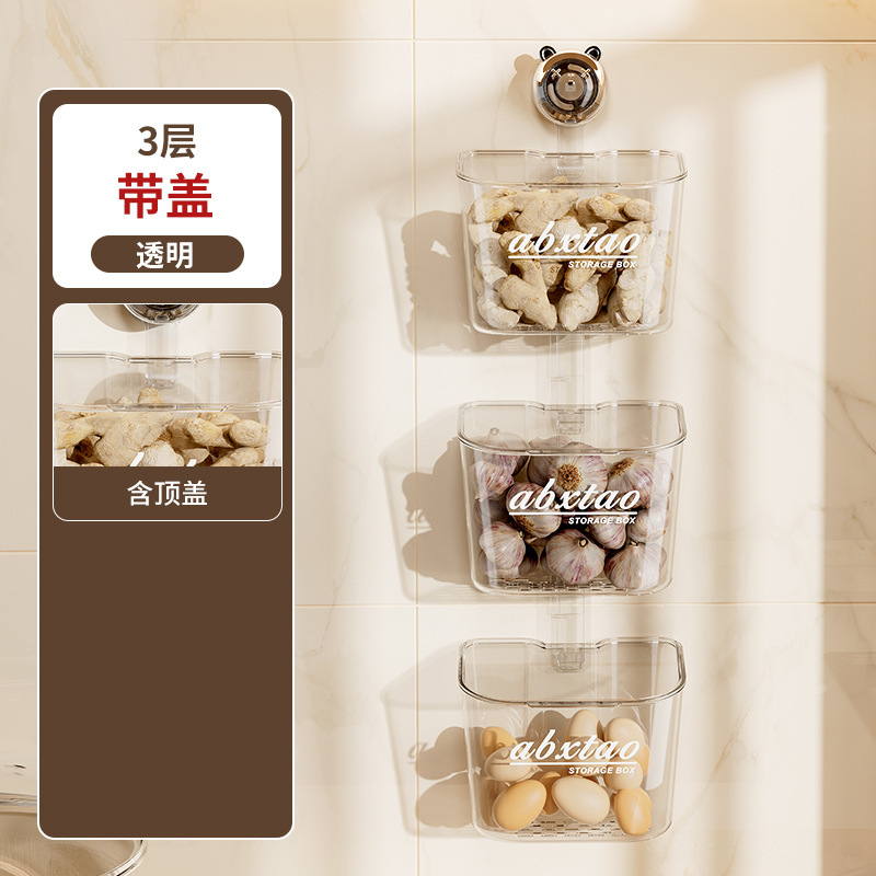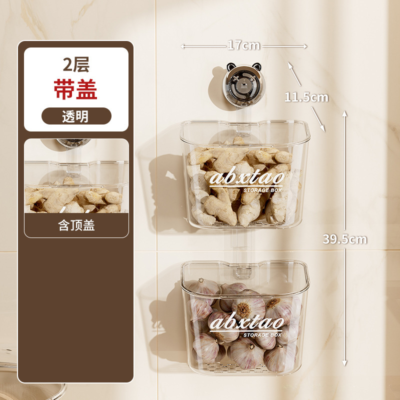 주방 가마, 생강 및 마늘 저장 상자 벽걸이 흡입 컵 생강 및 마늘 저장 인공물 구멍이없는 교수형 바구니 배수 저장 랙