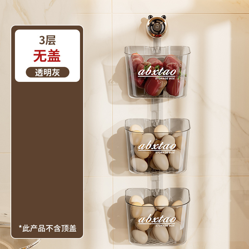 • 곰수납바구니 3단-뚜껑 없음-투명회색