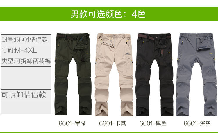 여름 새로운 2 섹션 소박한 바지 야외 등산 방풍 통기성 분리 가능한 커플 소박한 바지 탄성 스포츠스토어 가기