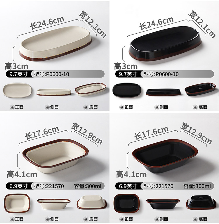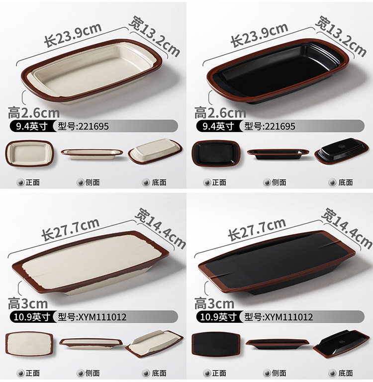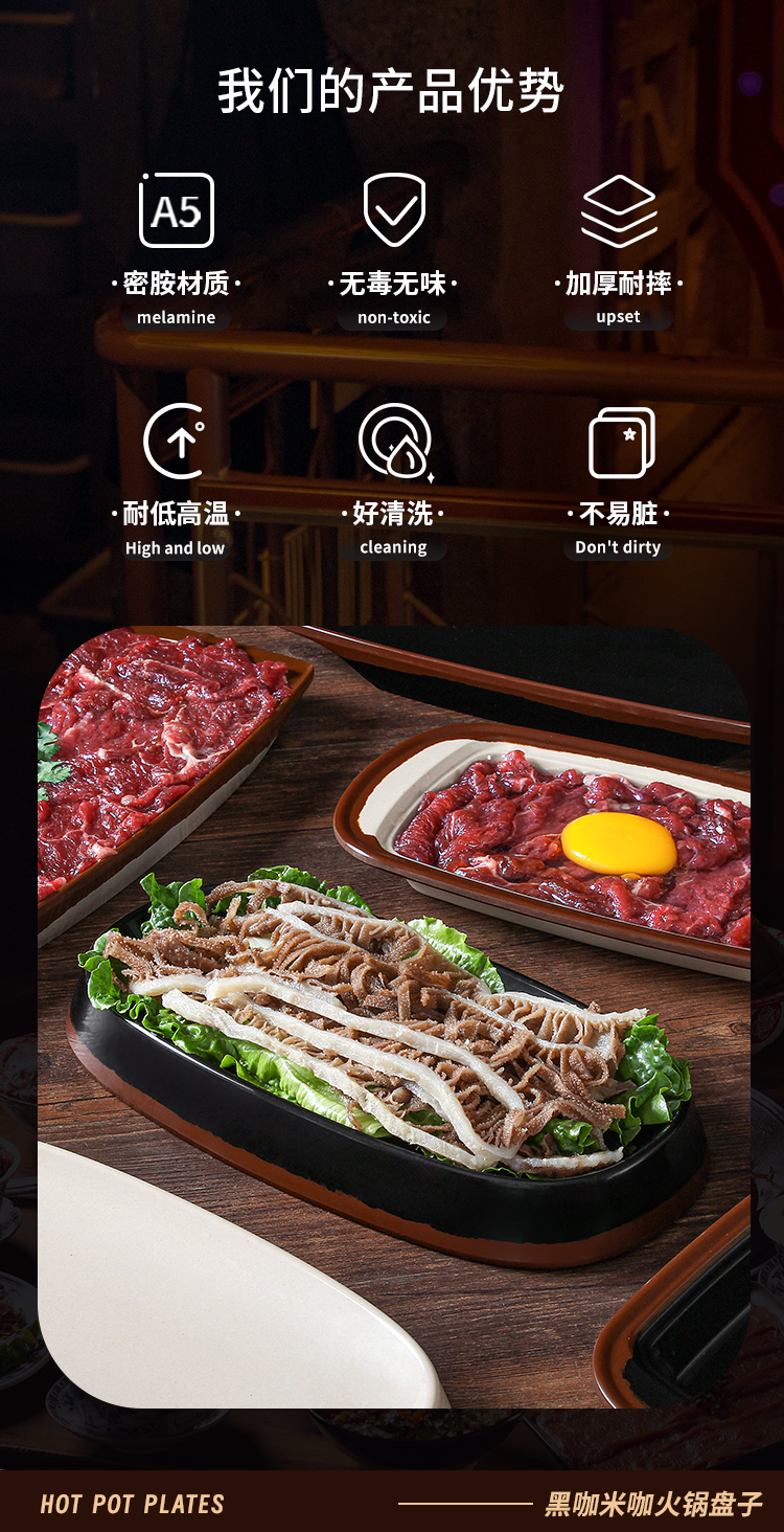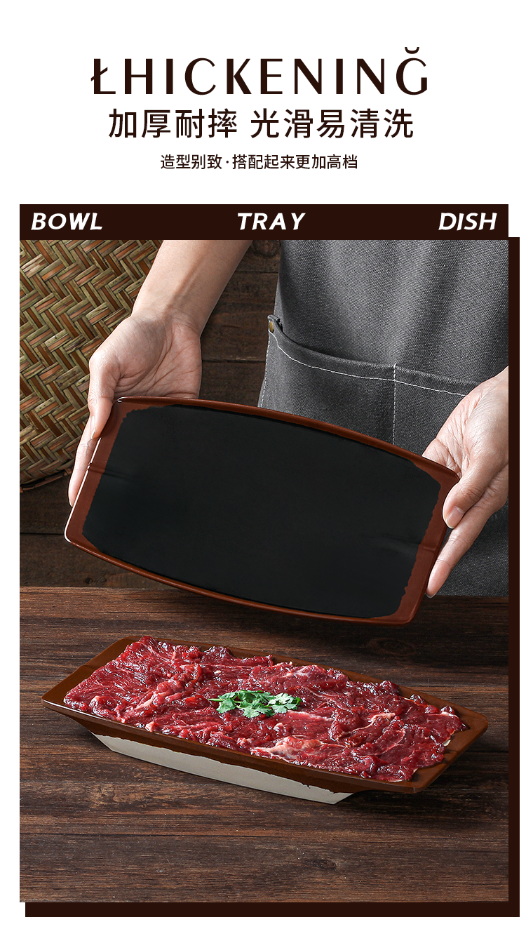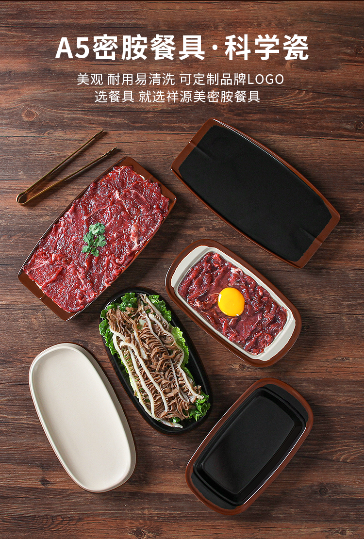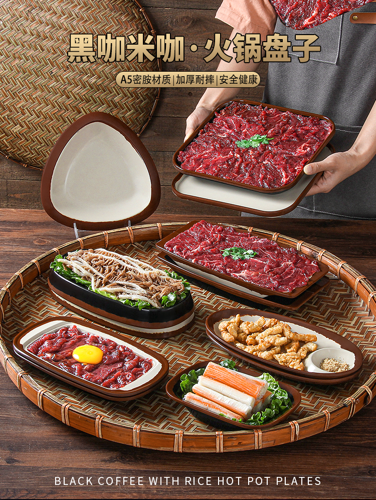 멜라민 식기 세트 셀프 서비스 채핑 접시 도자기 모조 플라스틱 디너 플레이트 쇠고기 플레이트 직사각형 반찬 접시 상업