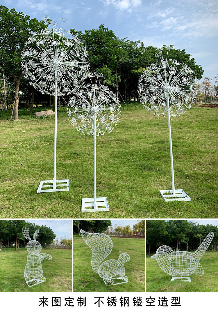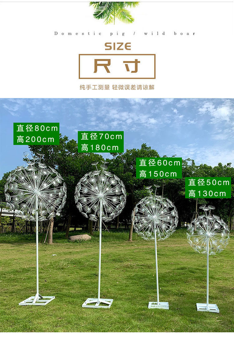 야외 스테인레스 스틸 빛나는 민들레 조각 공원 숲 풍경 잔디 식물 장식 판매 부 마당 장식품스토어 가기