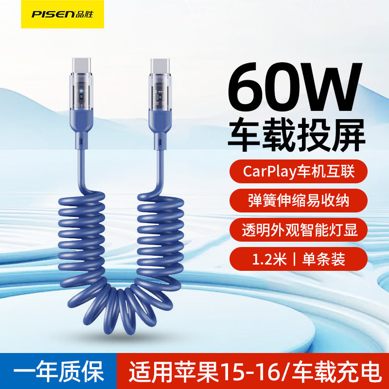 Pinsheng 자동차 데이터 라인 카플레이 화면 애플 16 충전 라인 스프링 PD 고속 충전 라인스토어 가기
