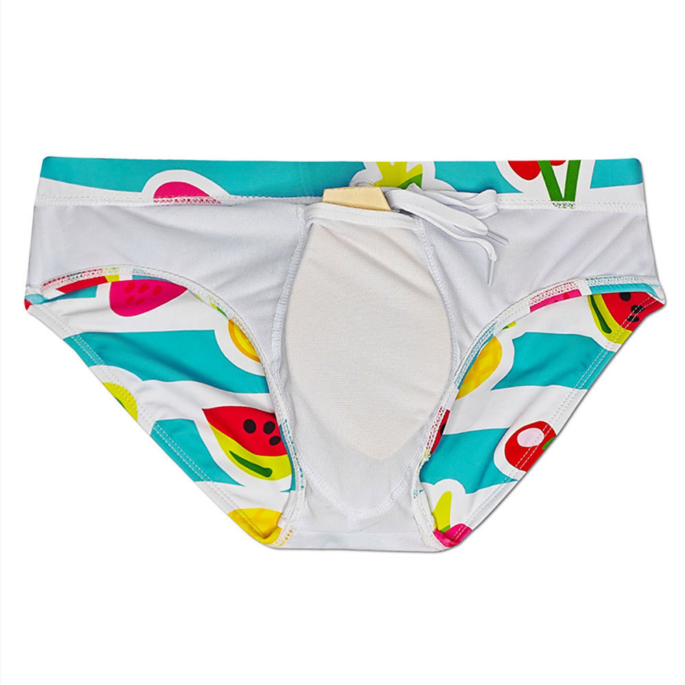 UXH 유럽과 미국의 대외 무역 섹시한 낮은 허리 신선한 과일 인쇄 남자의 삼각형 수영 트렁크 남성용 컵 수영 트렁크로 빠른 건조스토어 가기