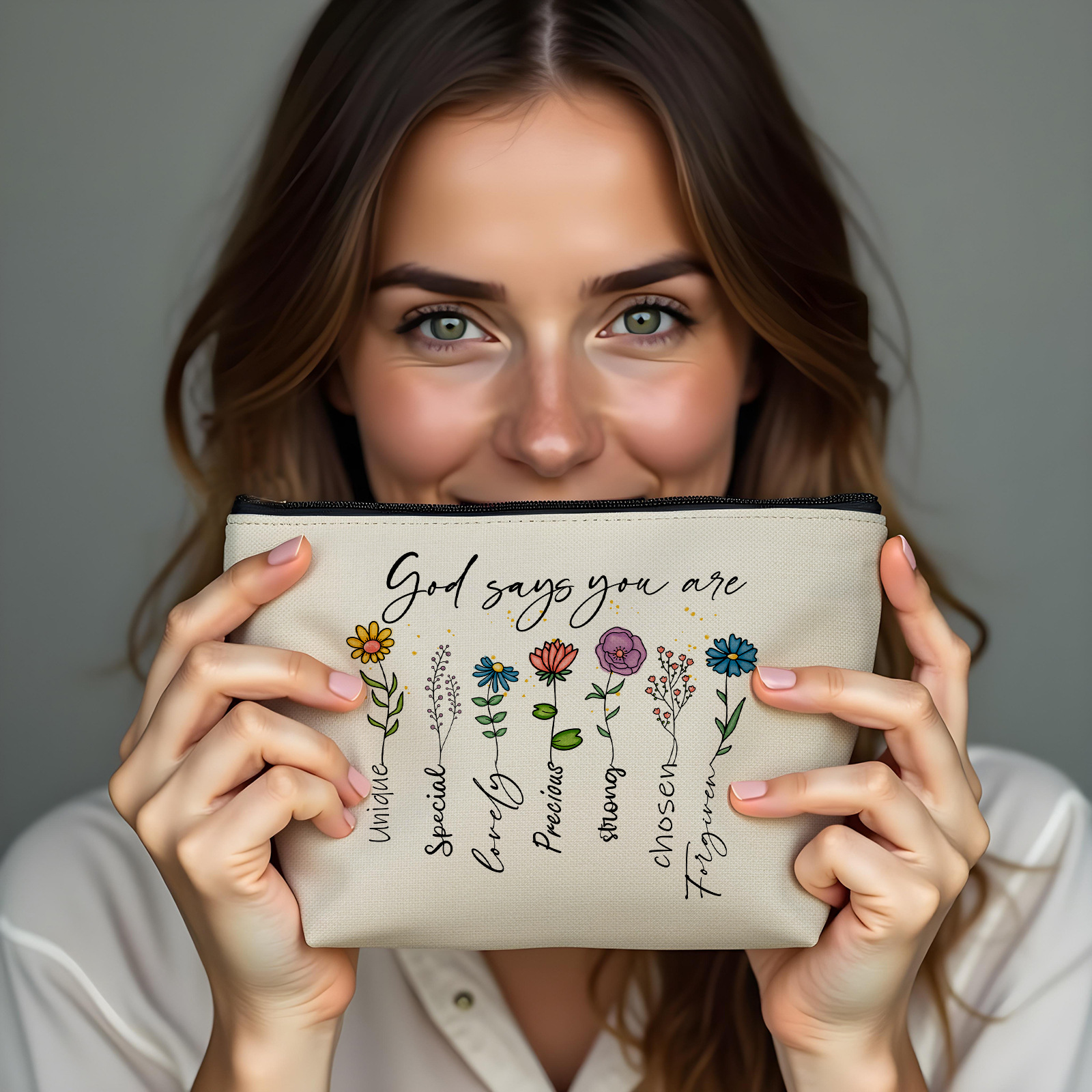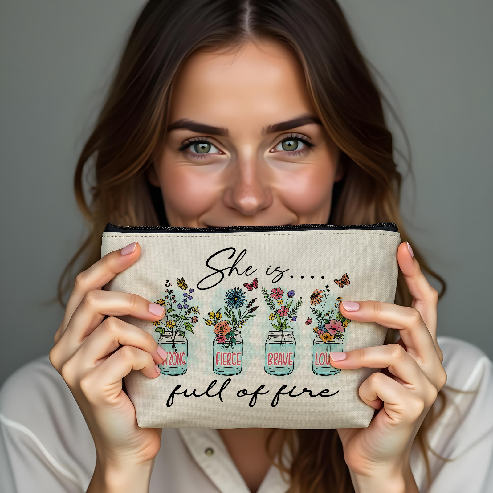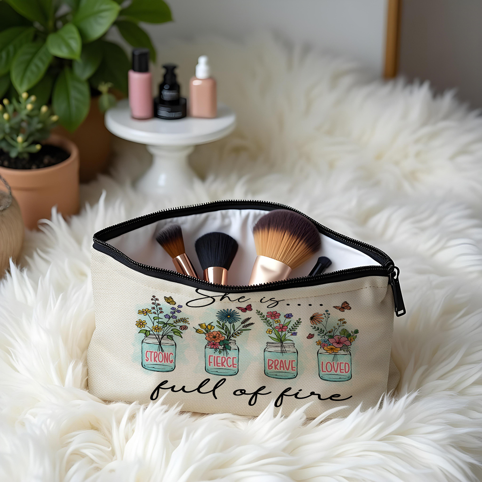 크로스보더 화장품 가방 아마존 지퍼 수납 가방 인용문 프린트 리넨 가방 학생 필통 다기능 화장품 가방스토어 가기