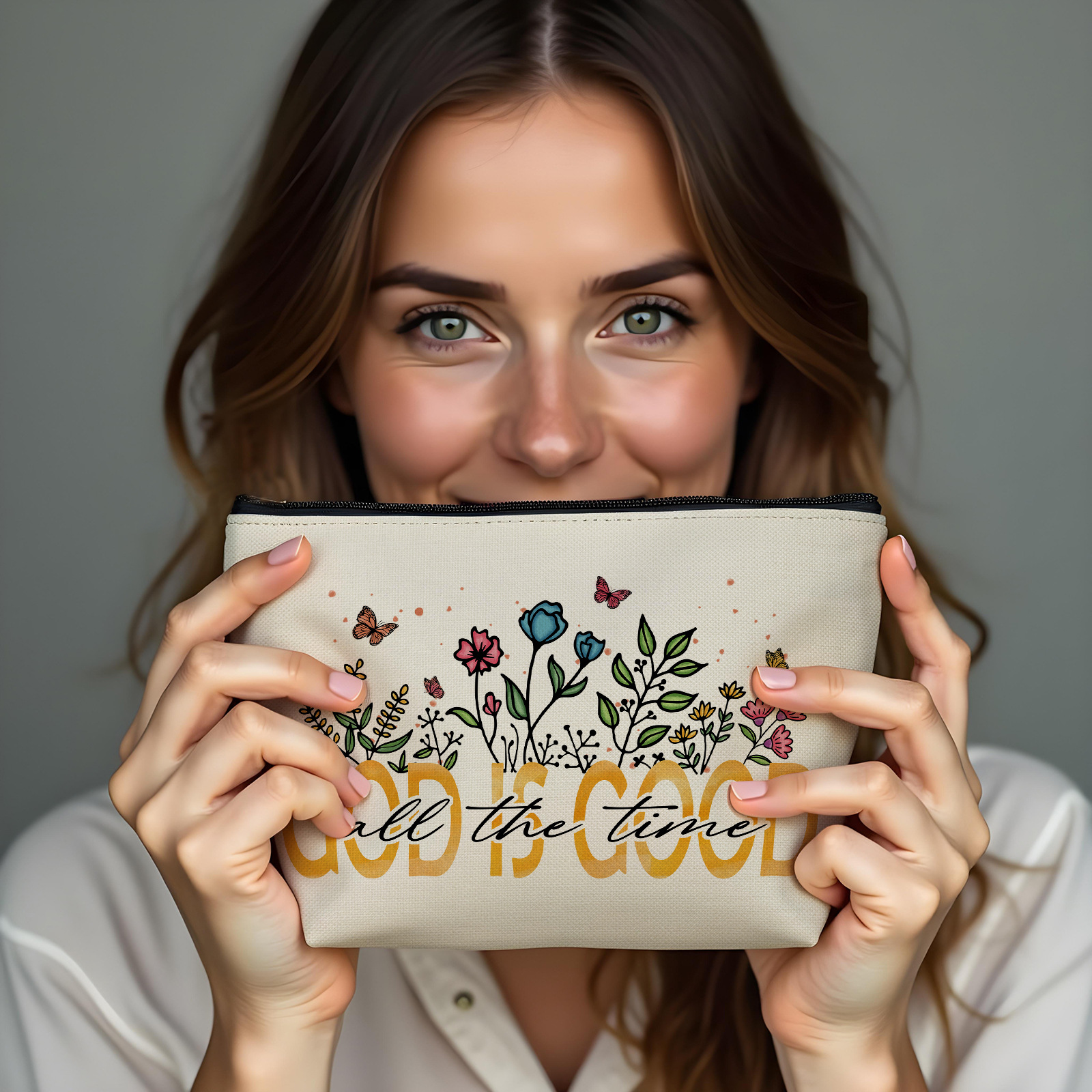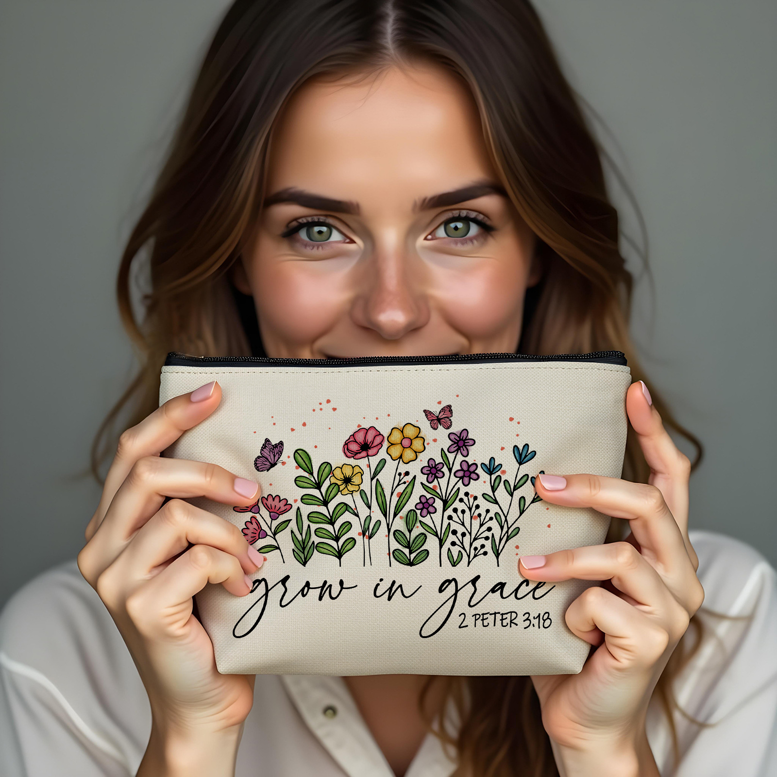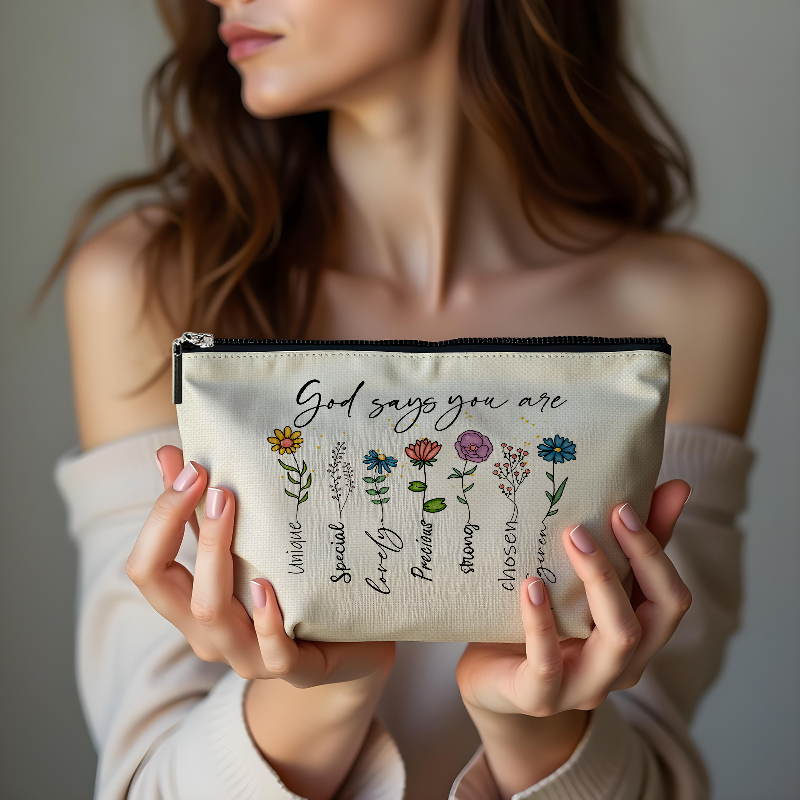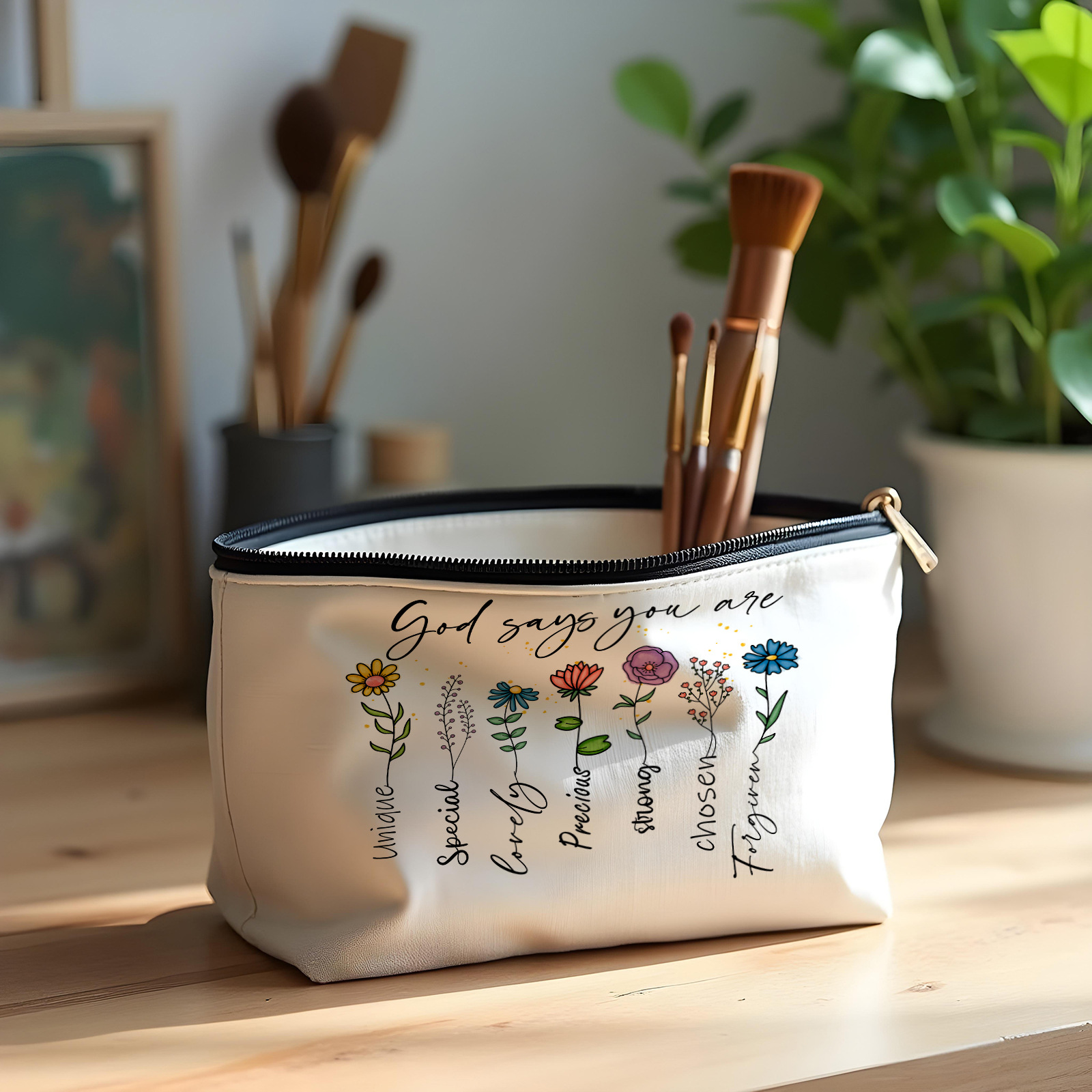 크로스보더 화장품 가방 아마존 지퍼 수납 가방 인용문 프린트 리넨 가방 학생 필통 다기능 화장품 가방스토어 가기