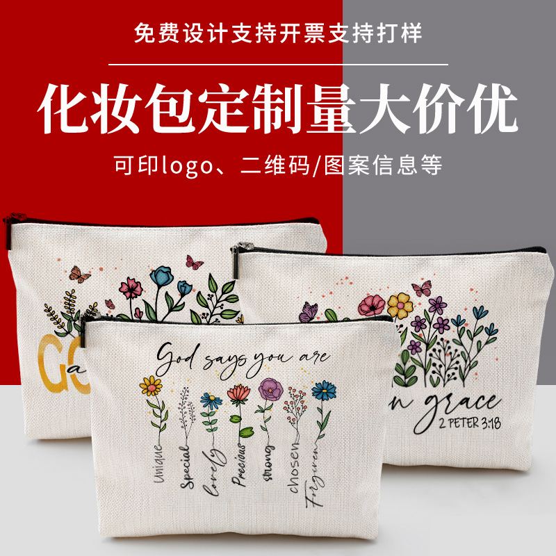 크로스보더 화장품 가방 아마존 지퍼 수납 가방 인용문 프린트 리넨 가방 학생 필통 다기능 화장품 가방
