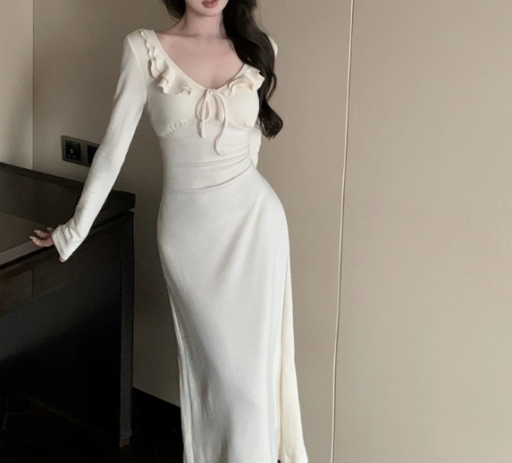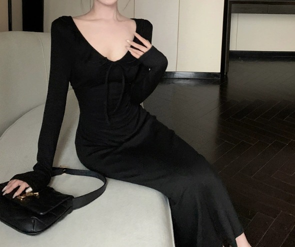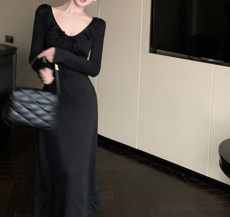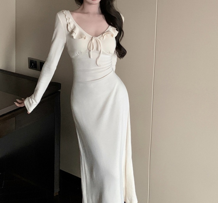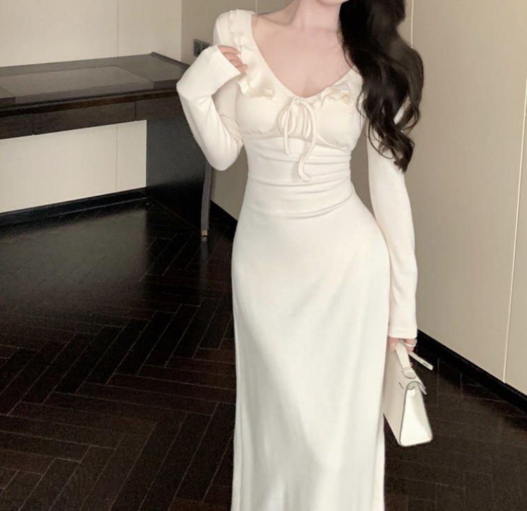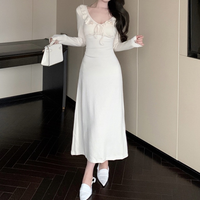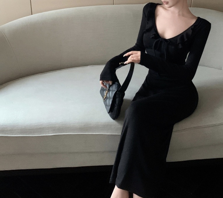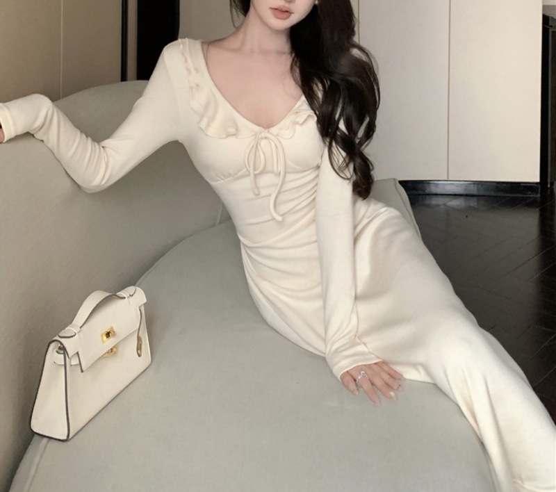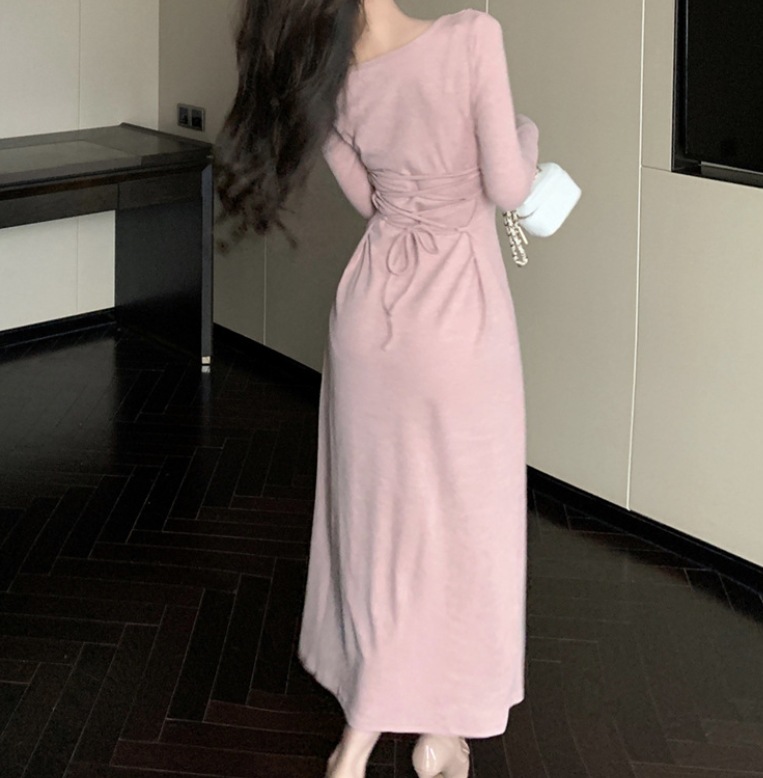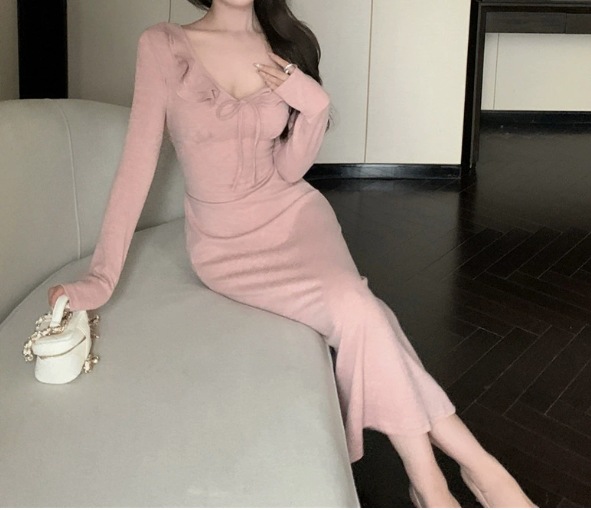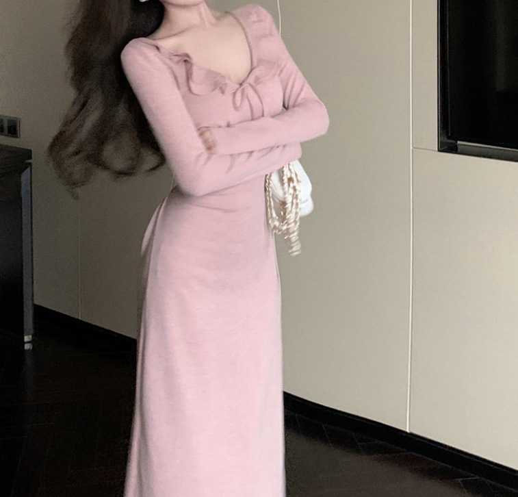 가을과 겨울 러플 스트랩베이스 원피스 2025 새로운 니트 힙 원피스 여성 핑크 원피스