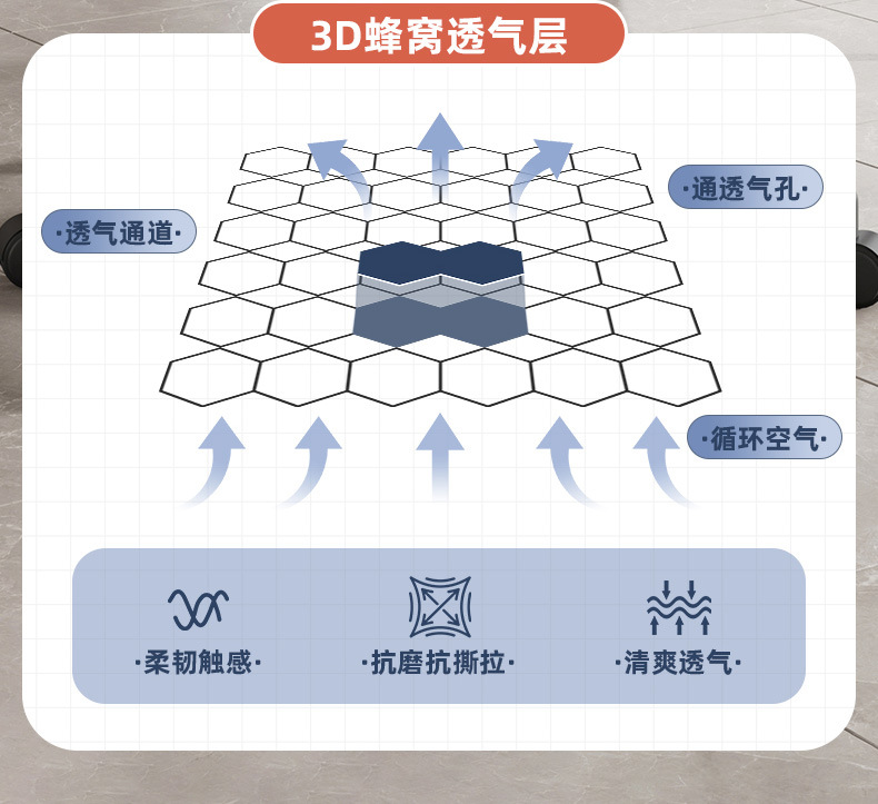 • 아치형 전기도금 다리 블랙 프레임 그레이 메쉬 + 머리 받침