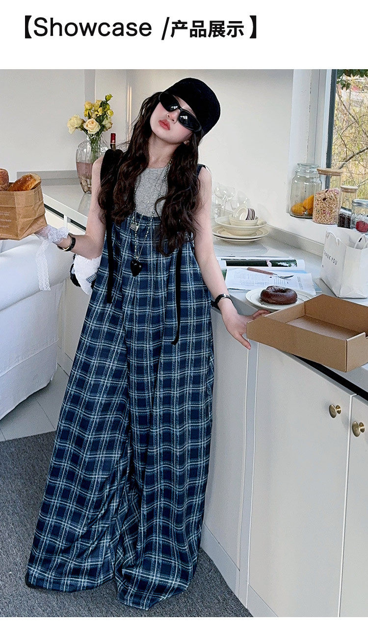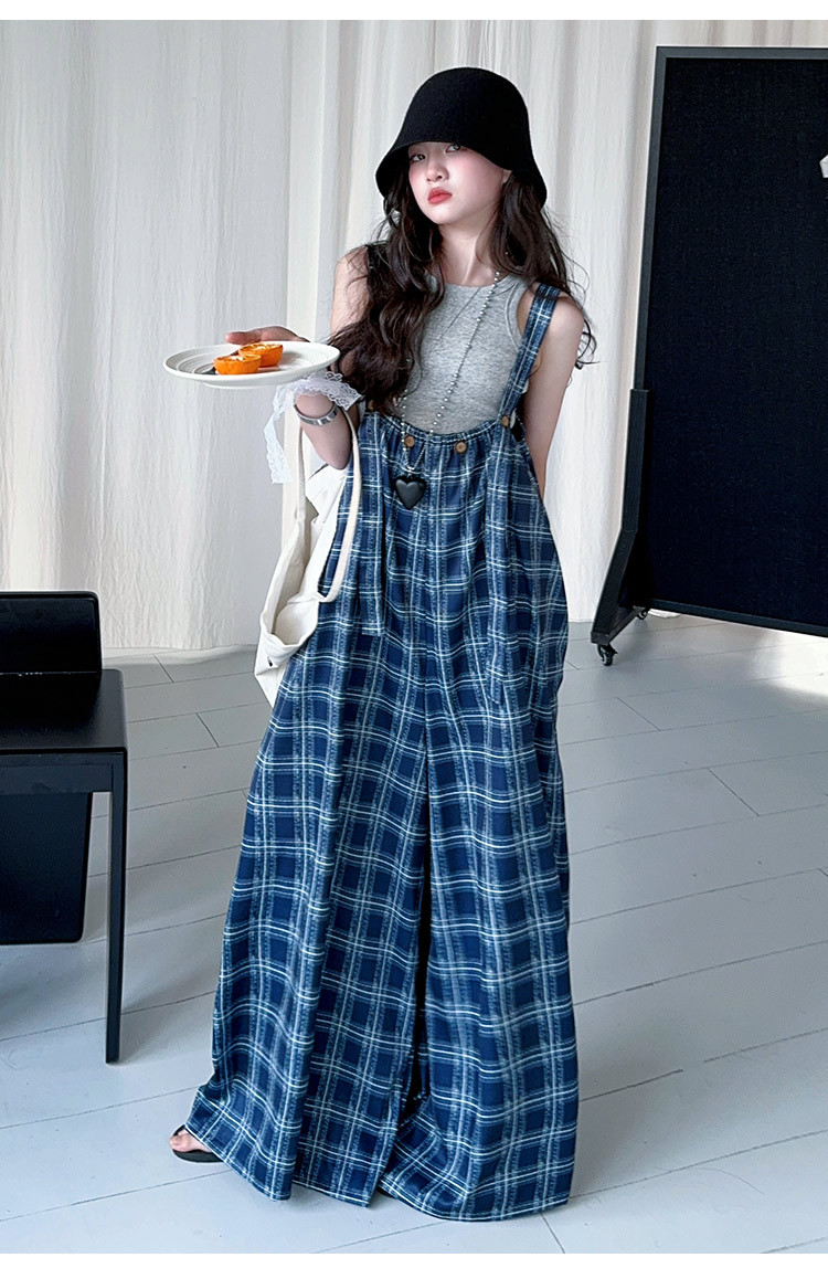 소녀 2025 봄 가을 한국 스타일 빨간 스트랩 느슨한 슬리밍 높은 허리 쌓인 패션 바지스토어 가기