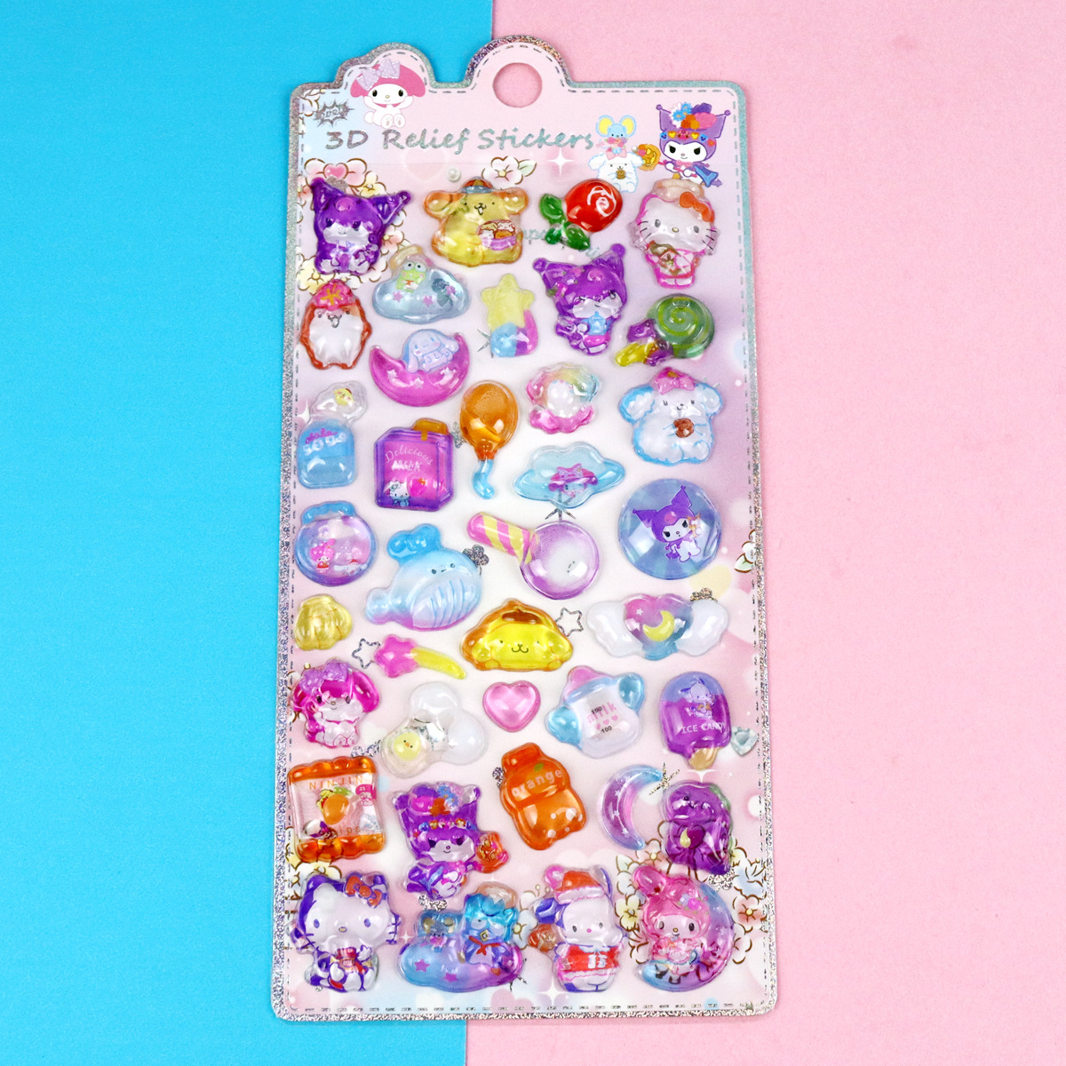 3D 스테레오 양각 크리스탈 스티커 어린이 만화 Sanrio Kulomi Merodi Gui Dog KT 고양이 물 스티커스토어 가기