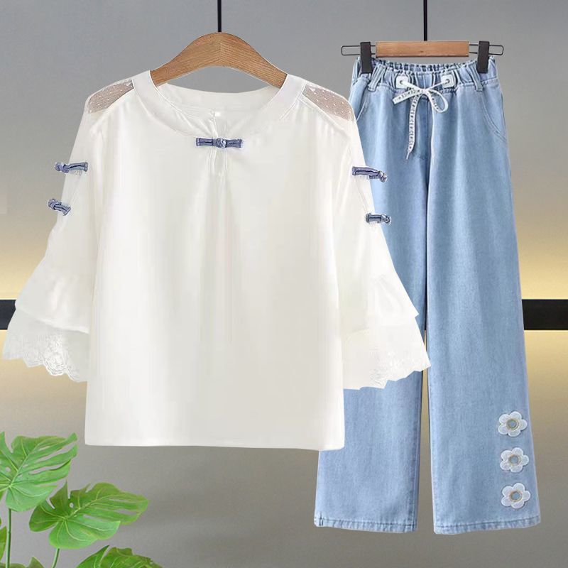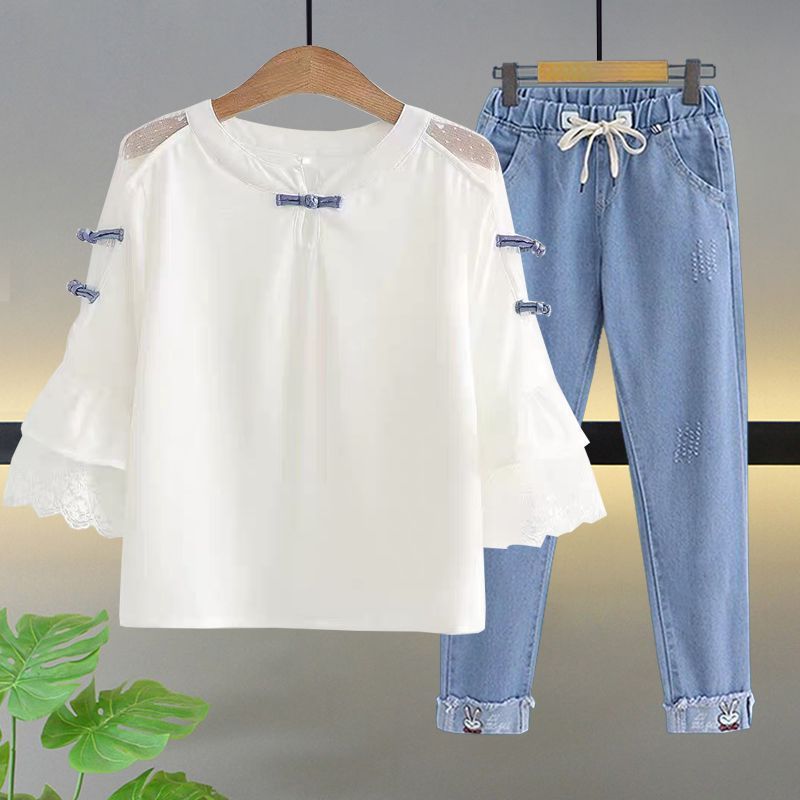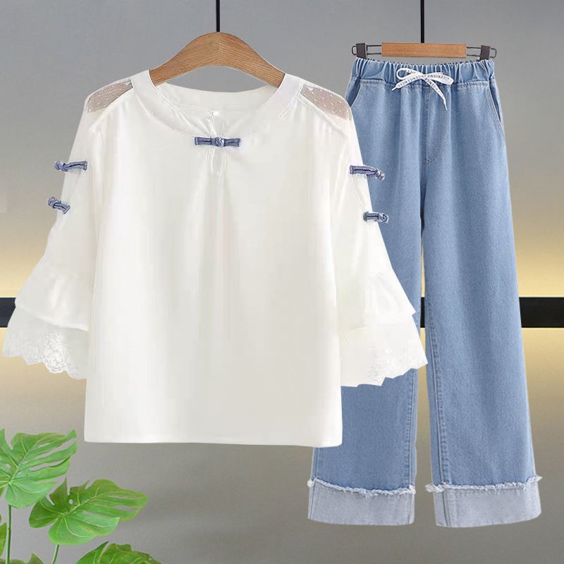 • 레이스 칼라 + 청바지