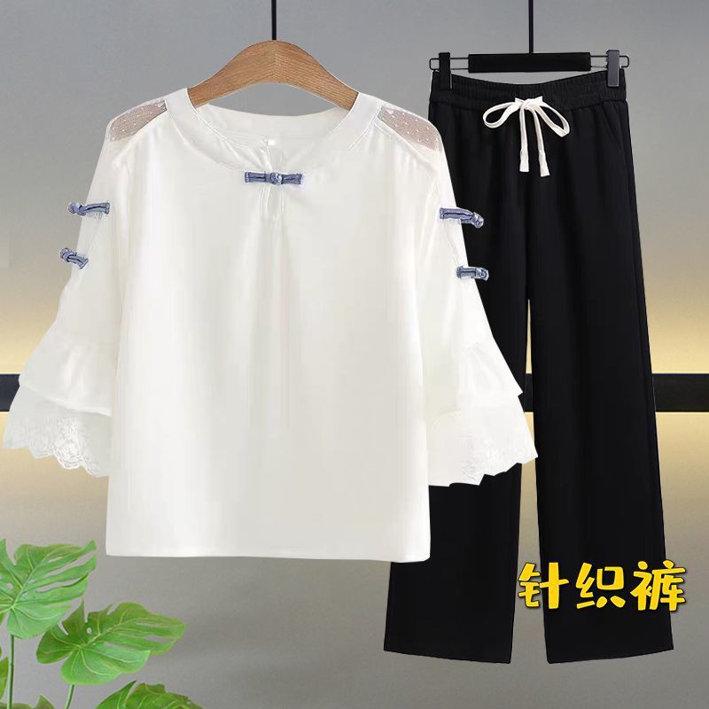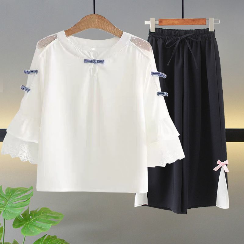 • 레이스 칼라 + 쉬폰 팬츠