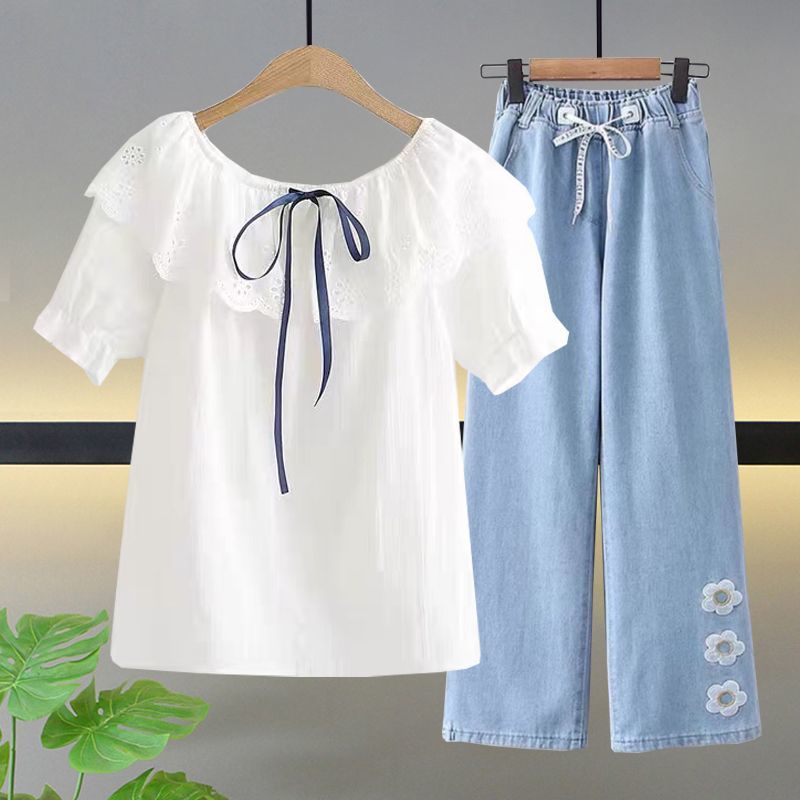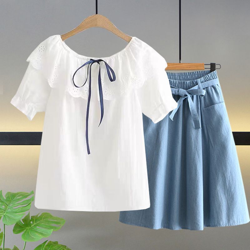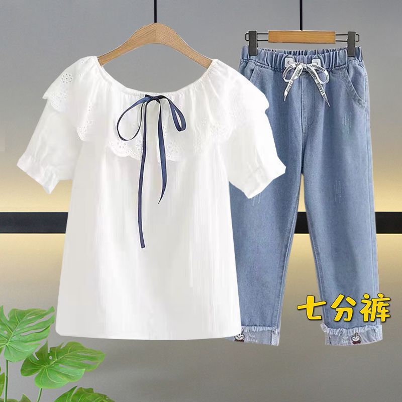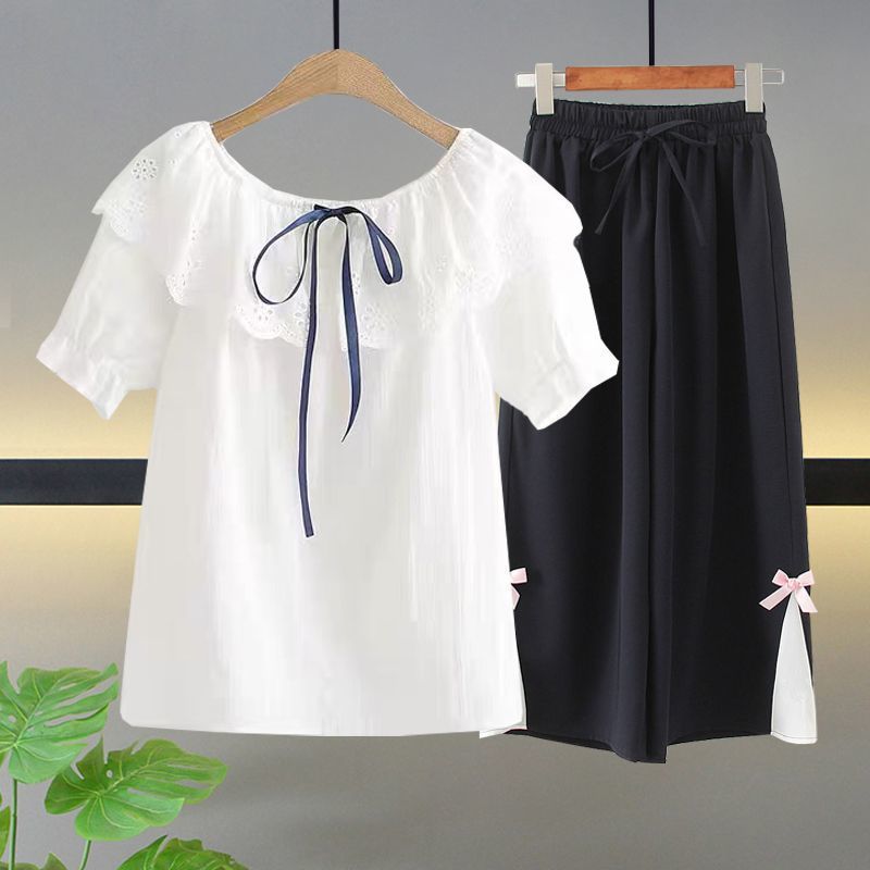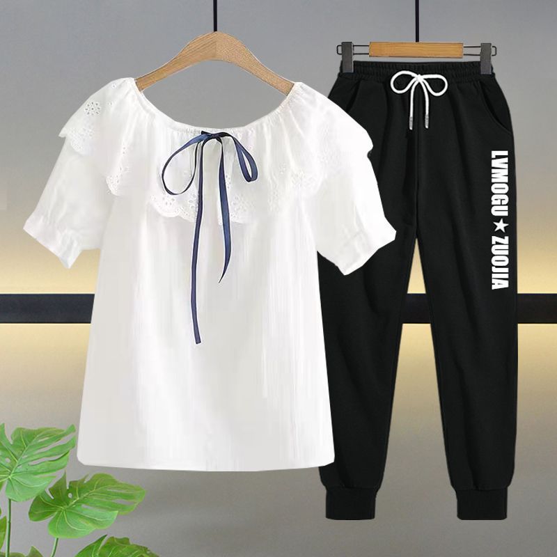 여자 여름 얇은 싱글/세트 어린 소녀 반팔 쉬폰 셔츠 학생 여성 서양식 여름 투피스 세트스토어 가기
