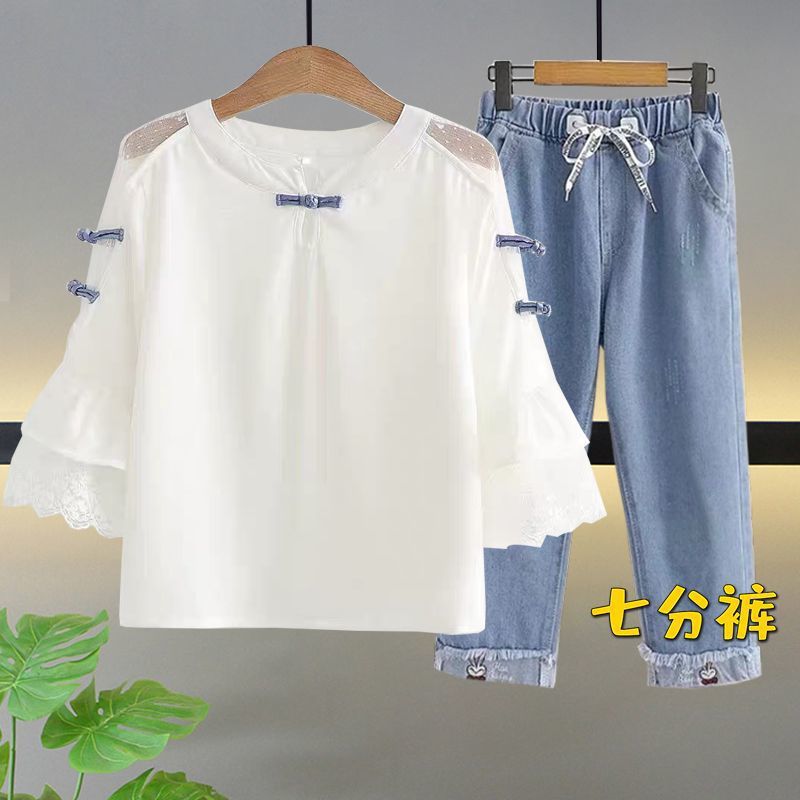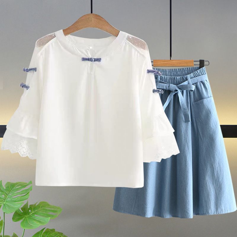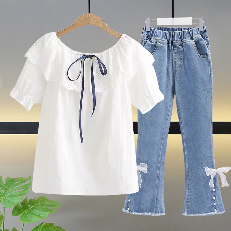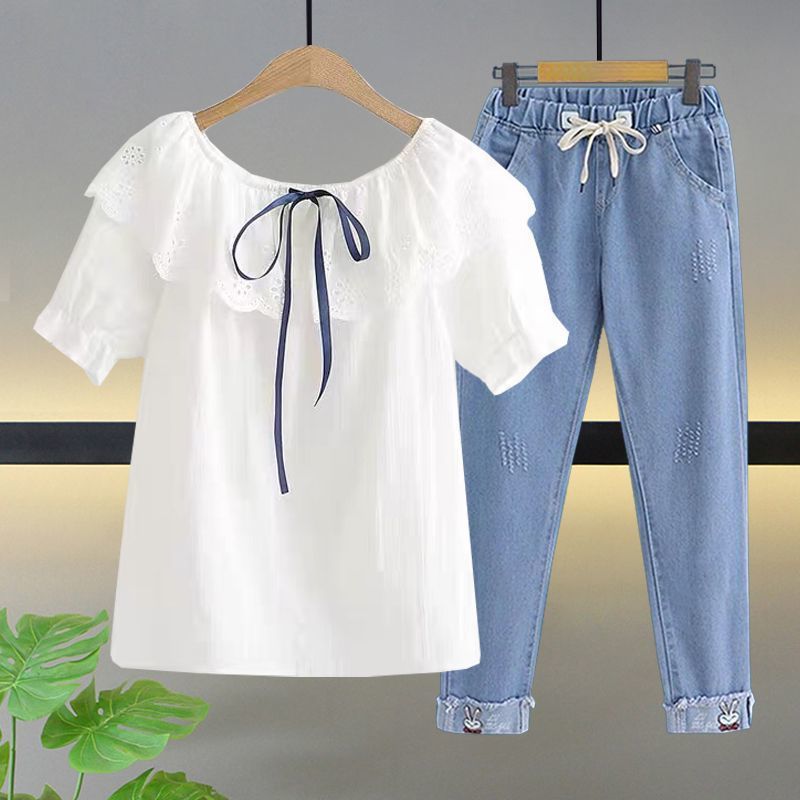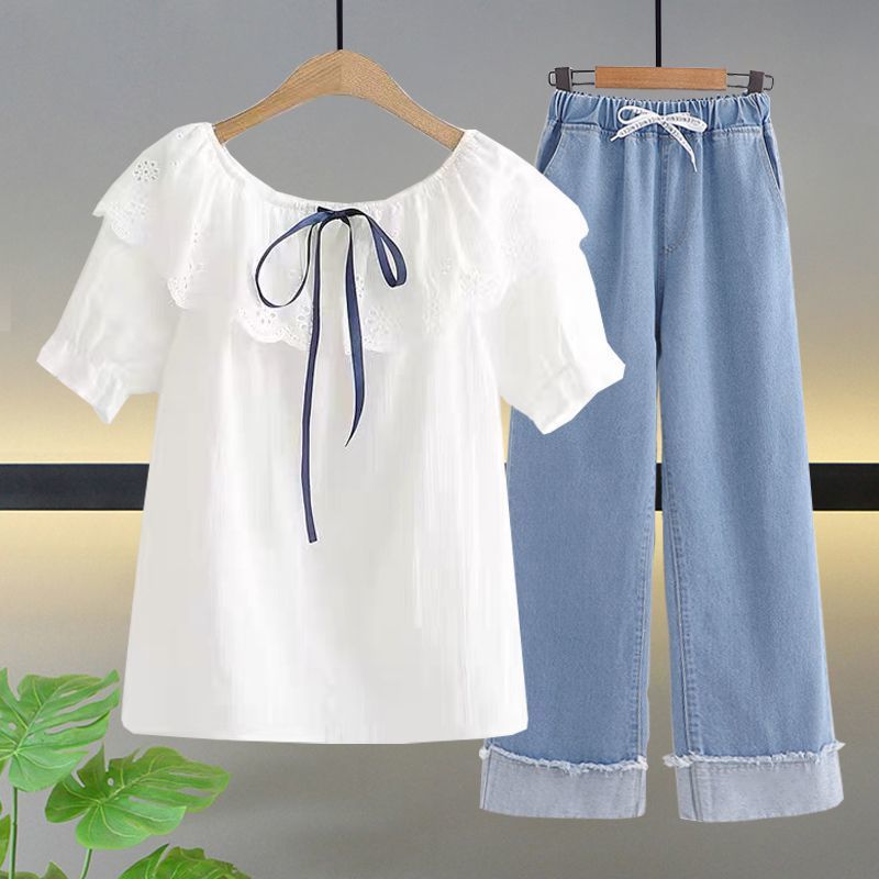 여자 여름 얇은 싱글/세트 어린 소녀 반팔 쉬폰 셔츠 학생 여성 서양식 여름 투피스 세트스토어 가기