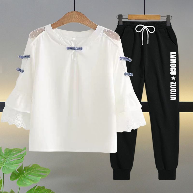 • 레이스 칼라 + 블랙 스웨트팬츠