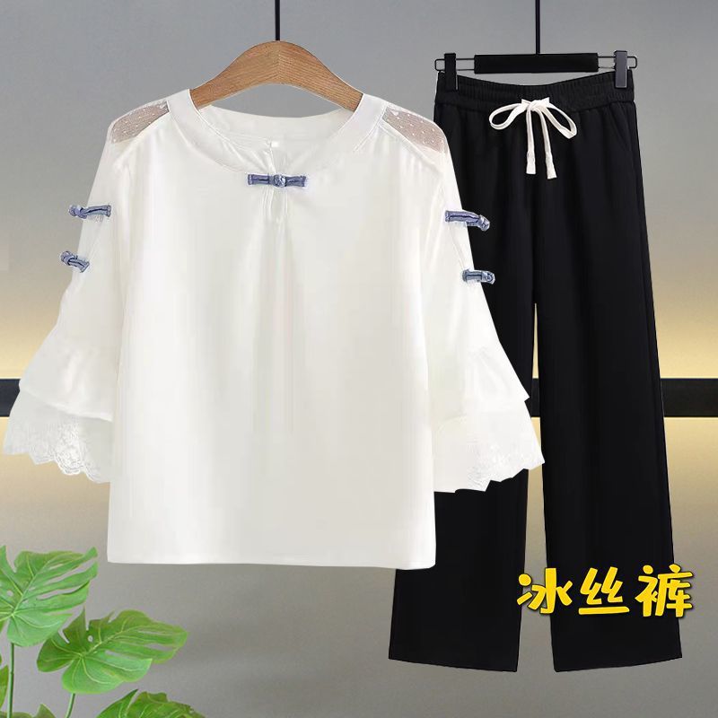 • 레이스 칼라 + 아이스 실크 팬츠