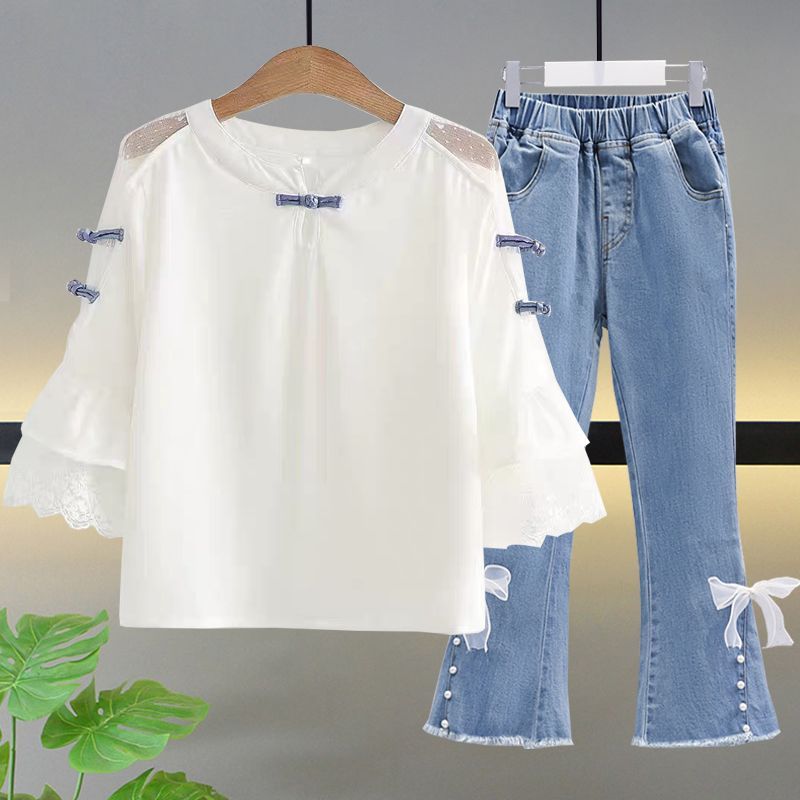 여자 여름 얇은 싱글/세트 어린 소녀 반팔 쉬폰 셔츠 학생 여성 서양식 여름 투피스 세트
