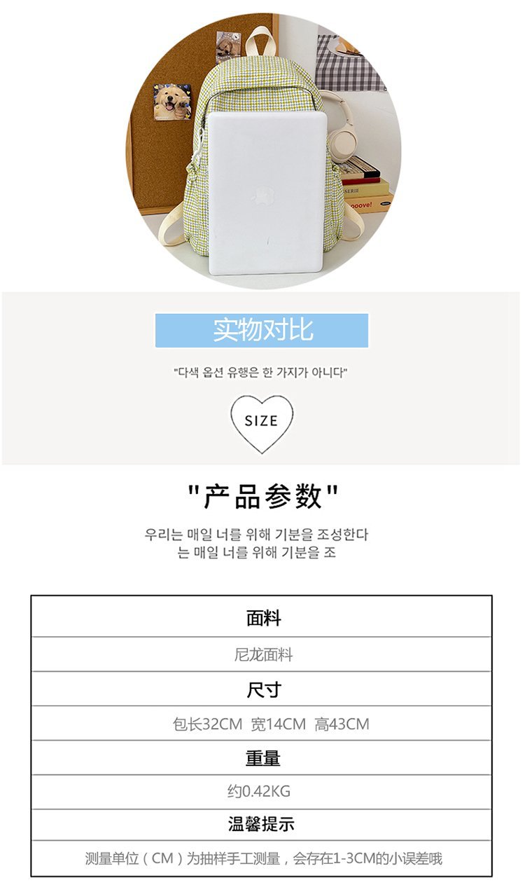 일본 Ins Plaid Schoolbag 소녀의 새로운 틈새 귀여운 배낭 대학생 캐주얼 올 매치 여행 배낭스토어 가기