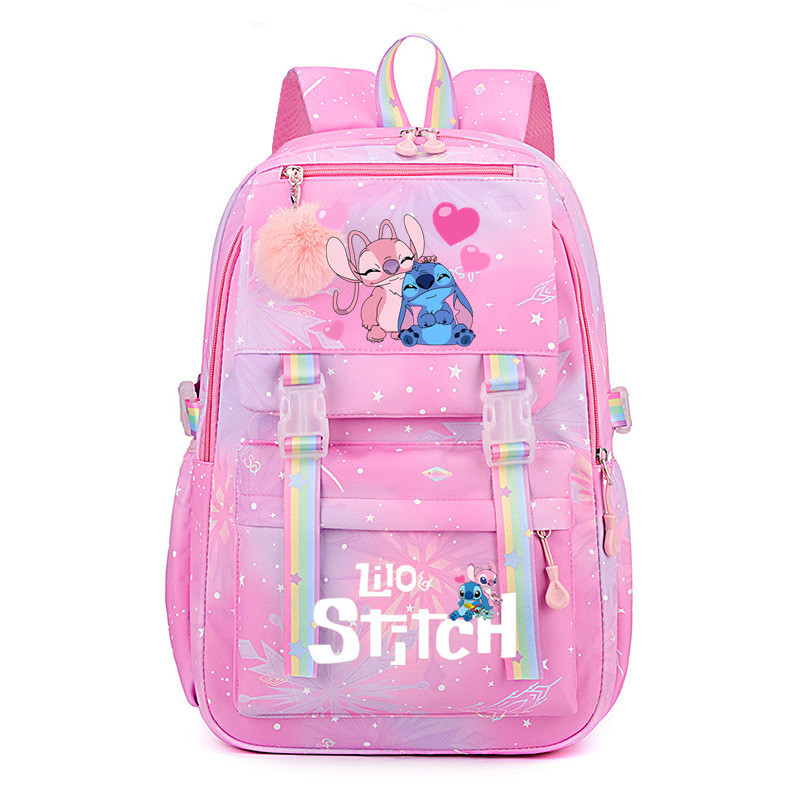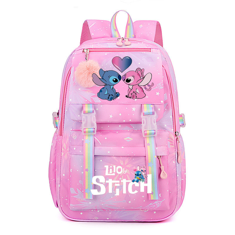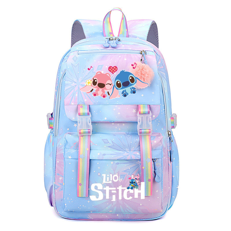 스타 아기 스티치 학생 학교 가방 대용량 배낭 무지개 인쇄 만화 야외 배낭