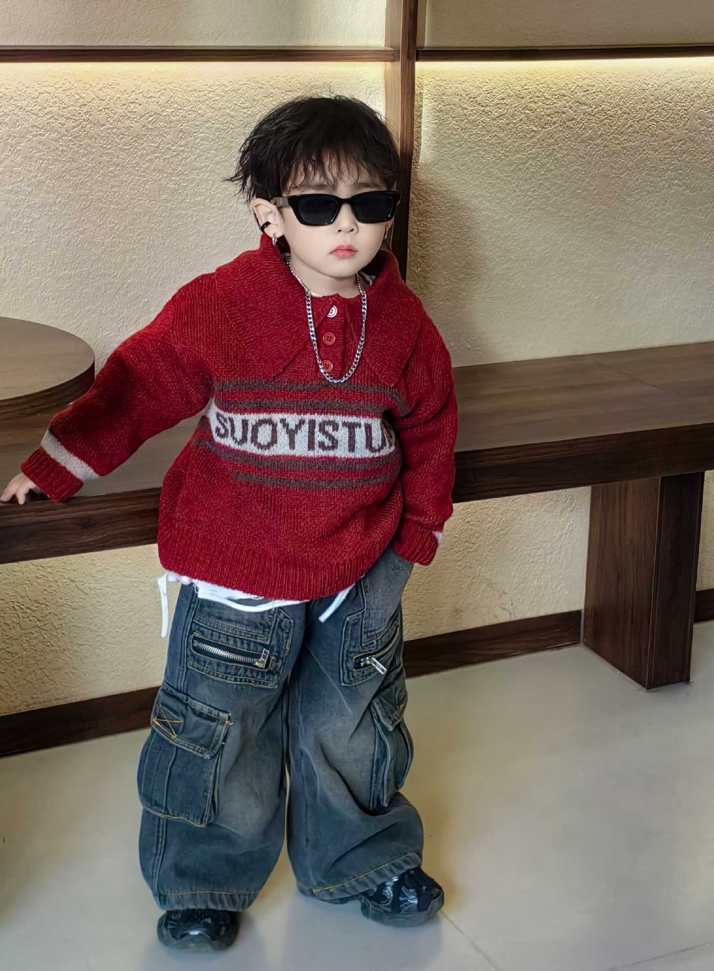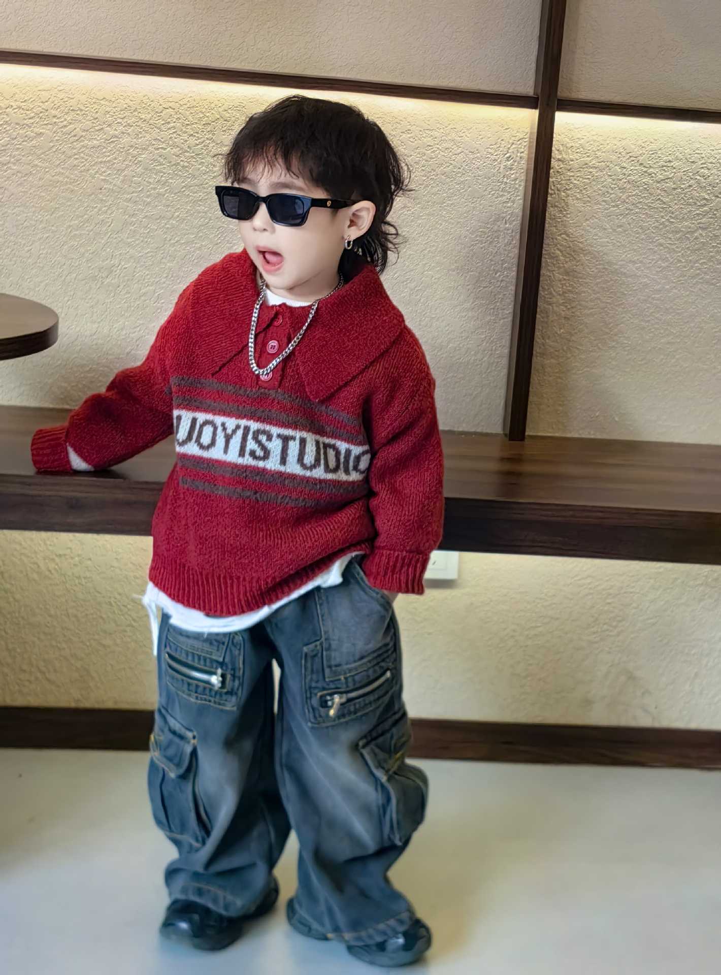 소스 2024 겨울 새 어린이 기모 청바지 소년 중 · 소형 어린이 한국식 올매치 바지 넓은 다리 추적