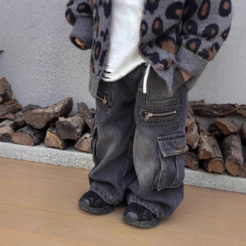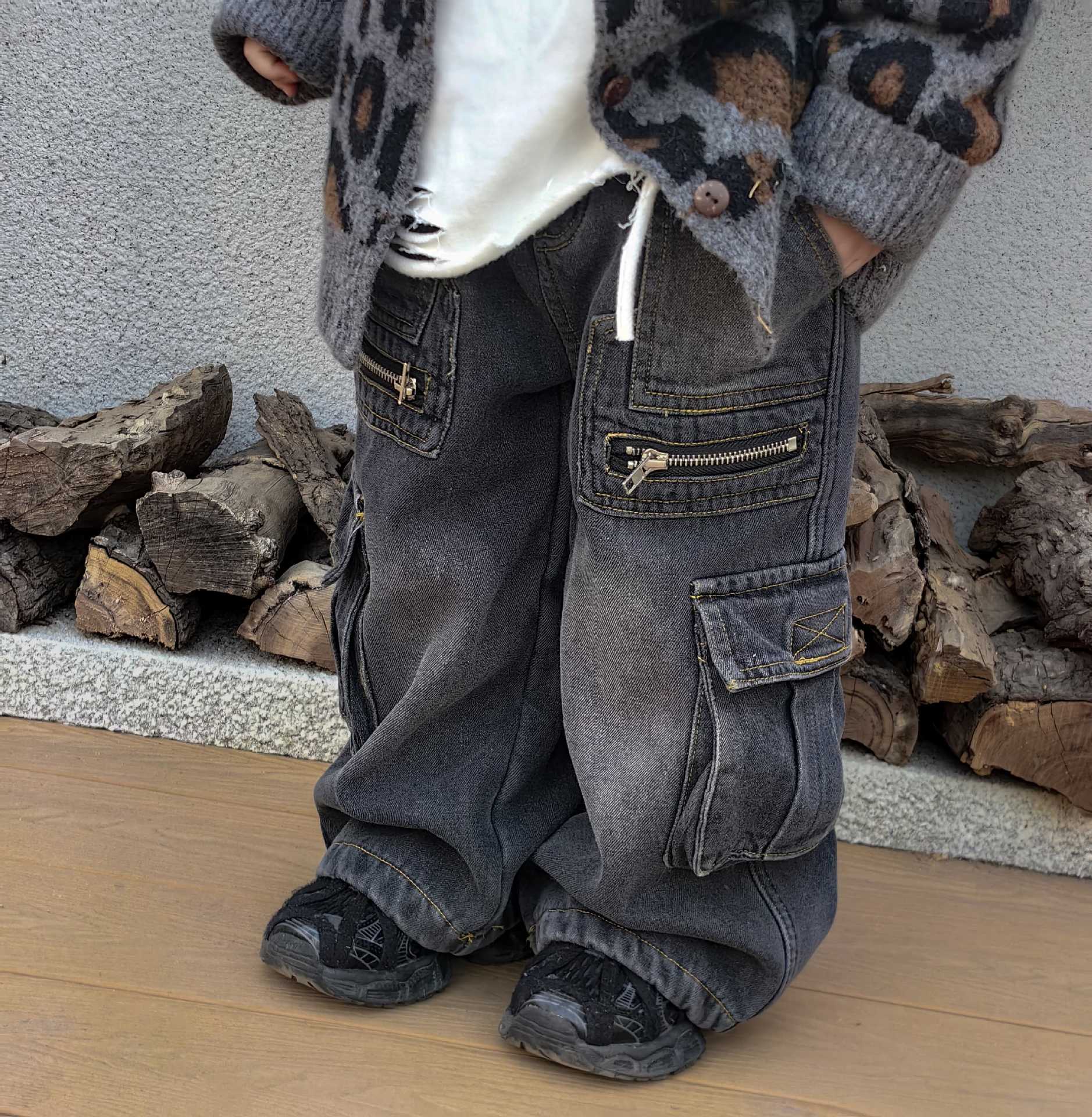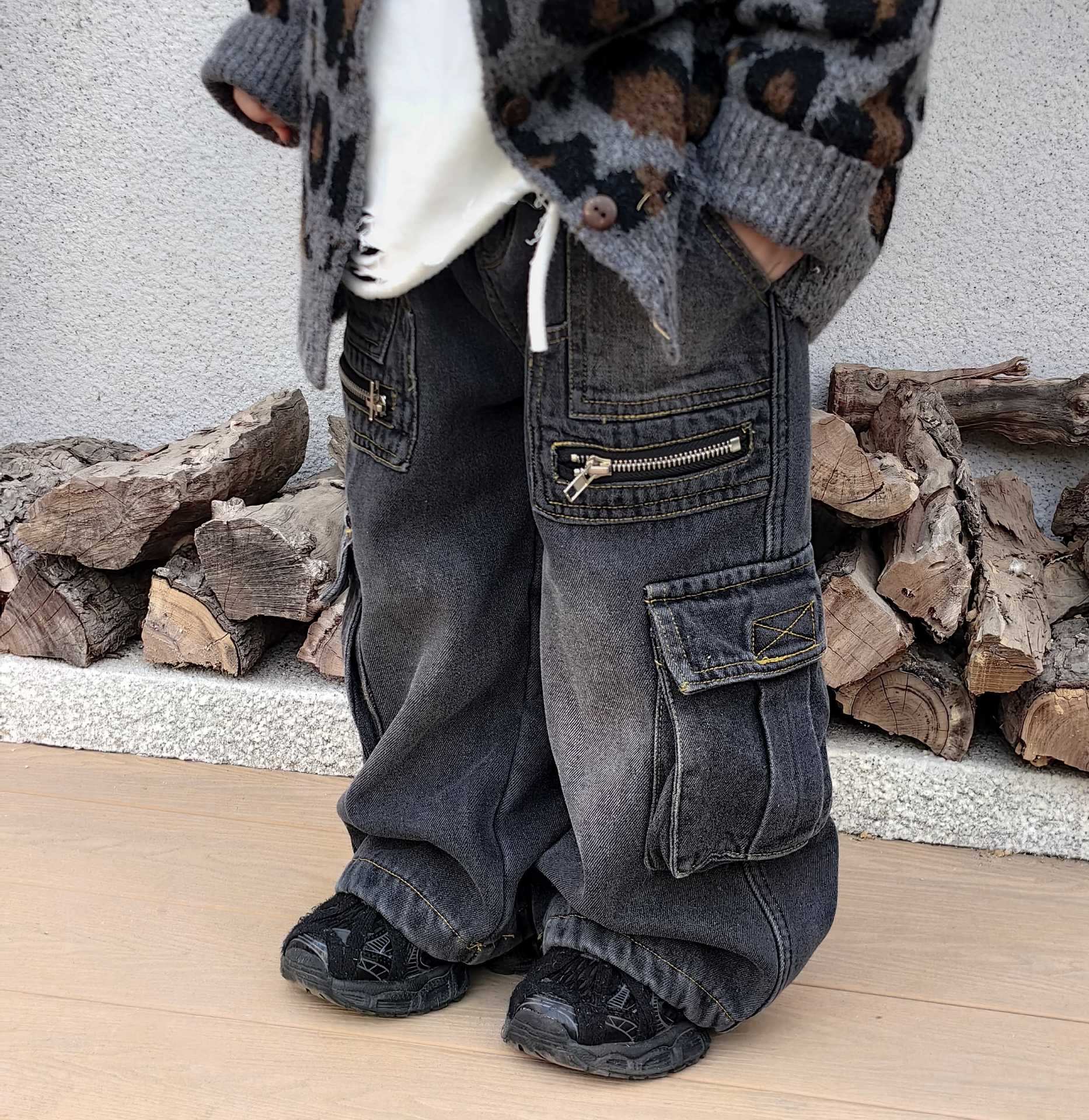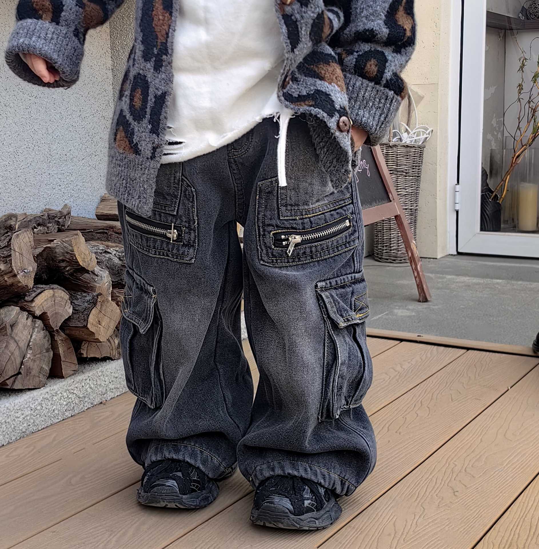 소스 2024 겨울 새 어린이 기모 청바지 소년 중 · 소형 어린이 한국식 올매치 바지 넓은 다리 추적스토어 가기