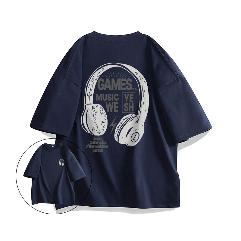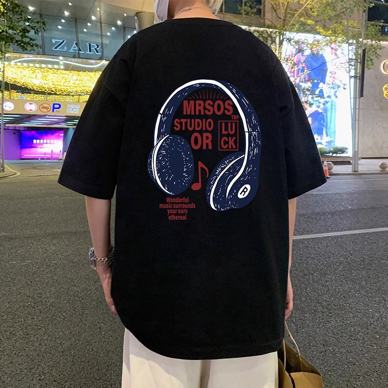 헤드폰 인쇄 반팔 티셔츠 여름 새로운 라운드 넥 반소매 트렌디 브랜드 트렌디 루즈 올 매치 탑스토어 가기