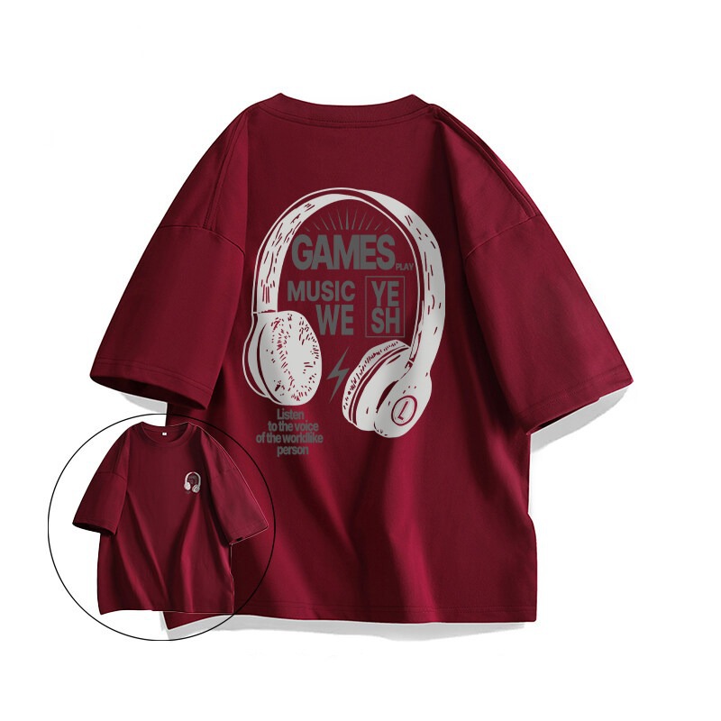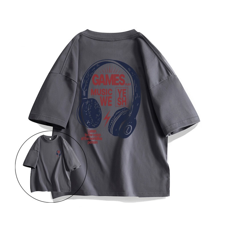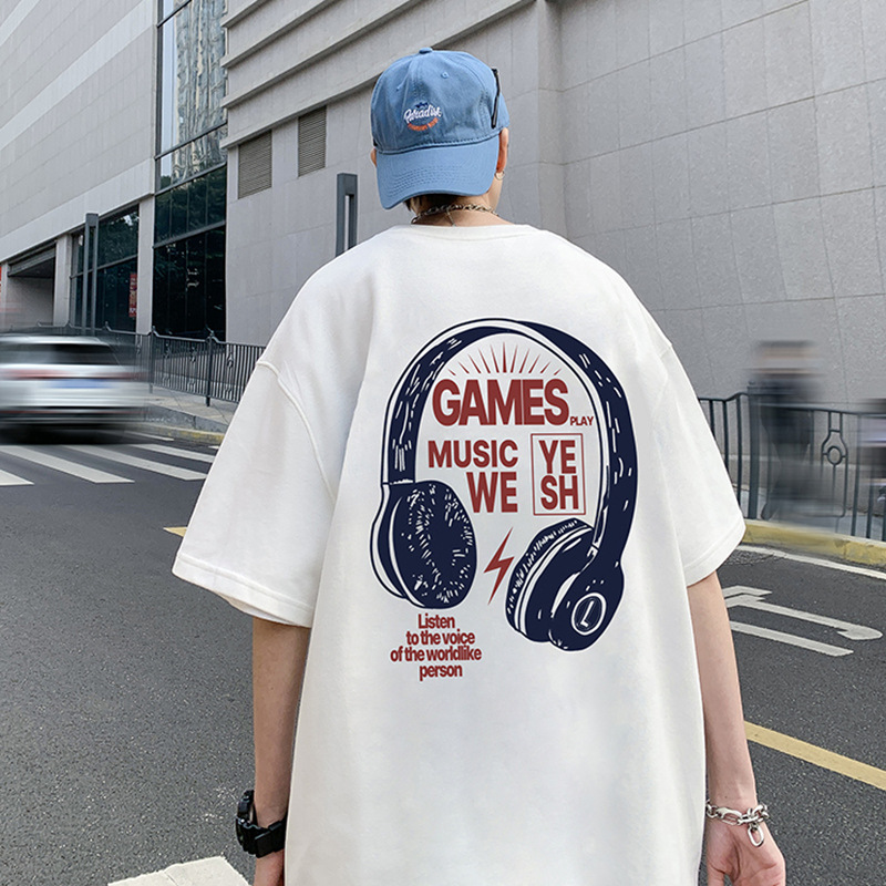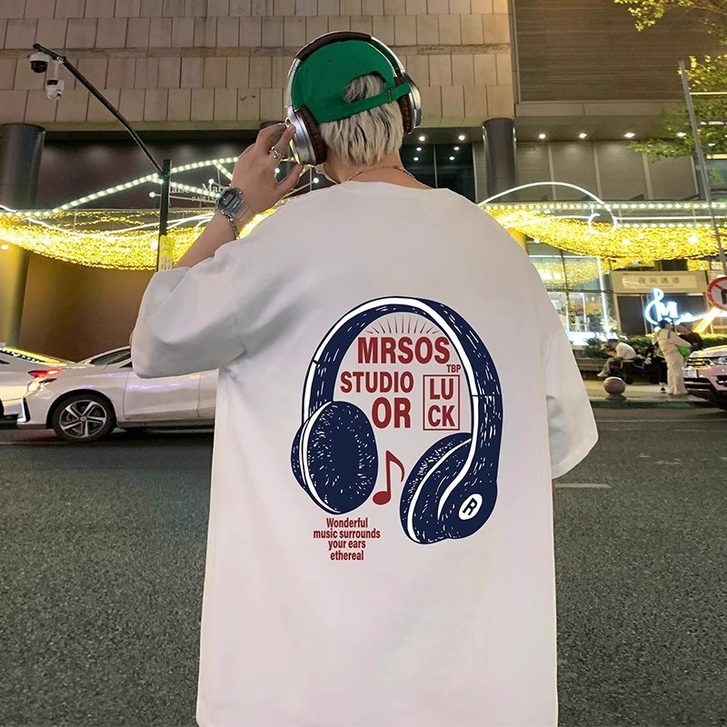 헤드폰 인쇄 반팔 티셔츠 여름 새로운 라운드 넥 반소매 트렌디 브랜드 트렌디 루즈 올 매치 탑