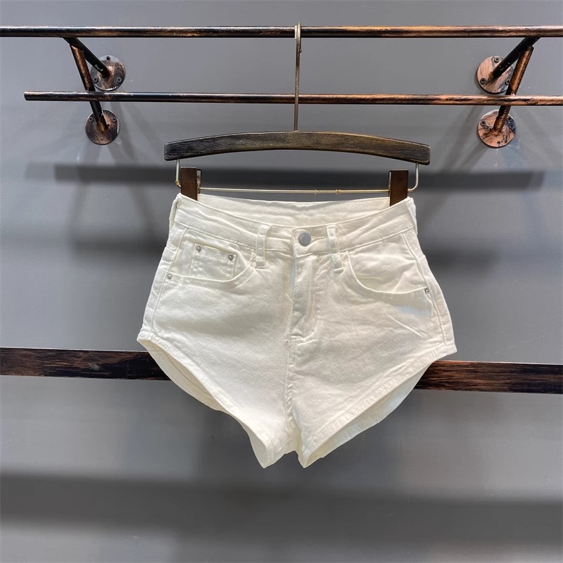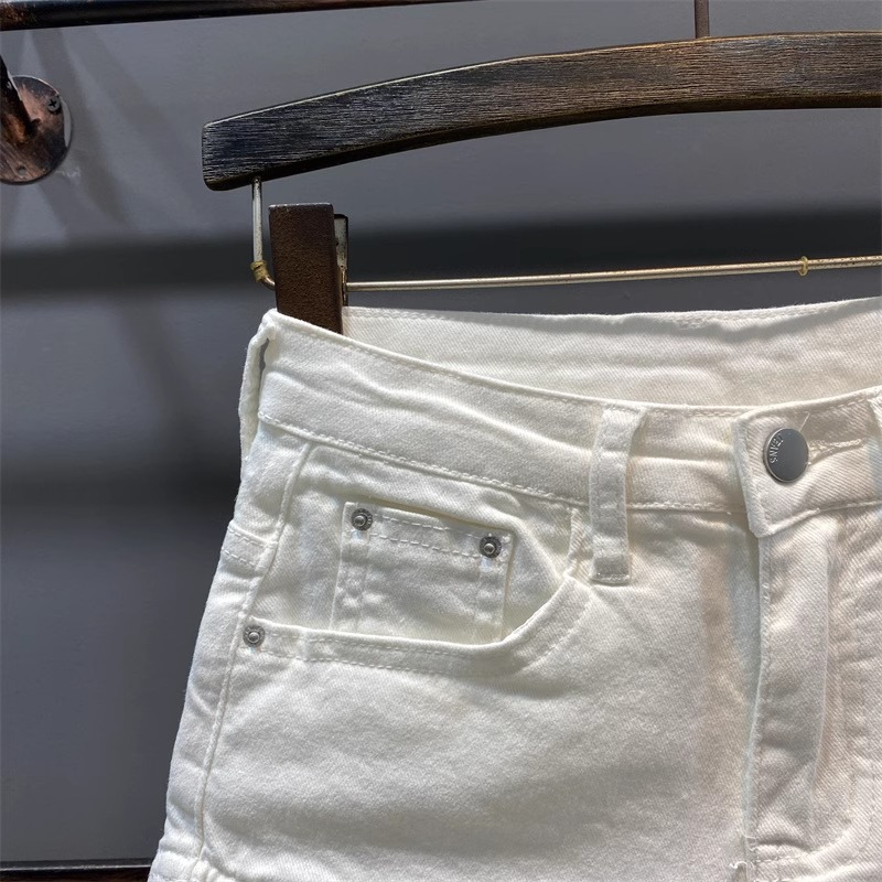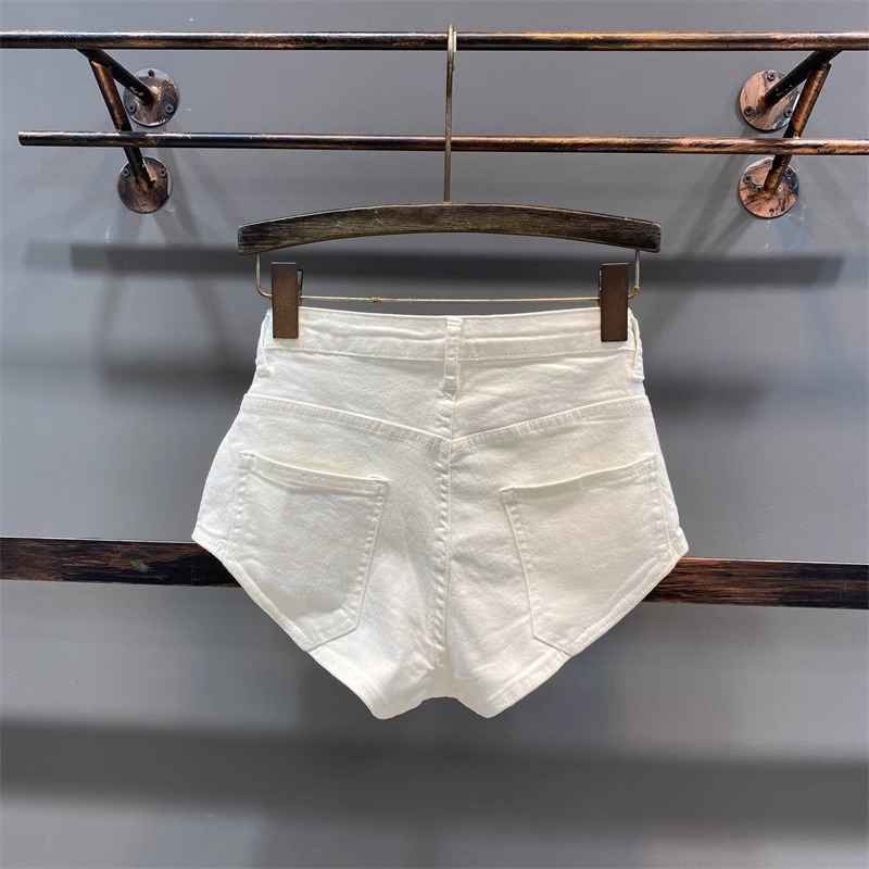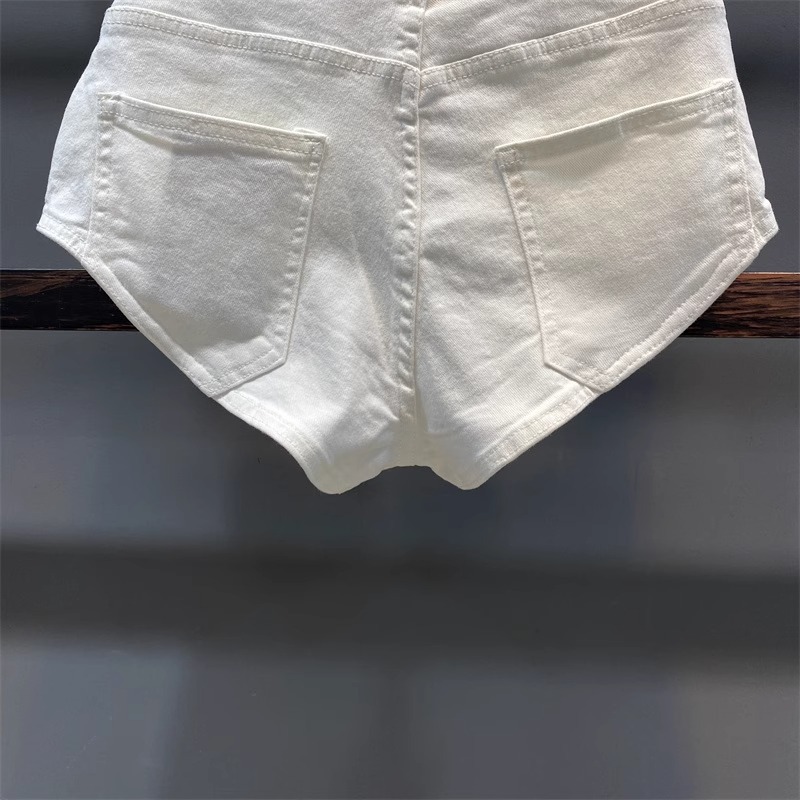 화이트 타이트 데님 반바지 여성 여름 2025 새로운 스파이스 걸스 섹시한 다리 긴 쿠션 기계 핫 바지스토어 가기