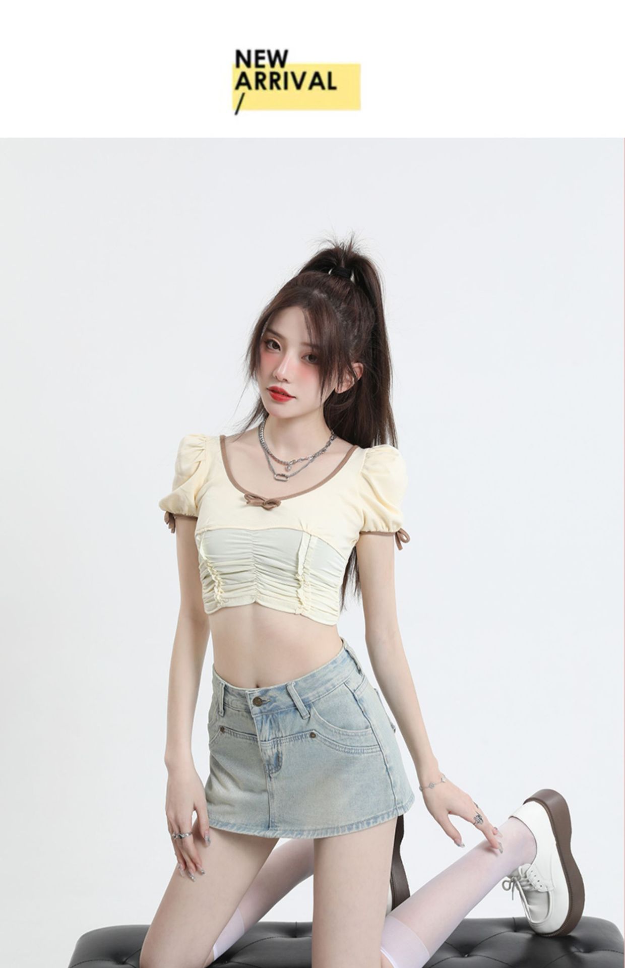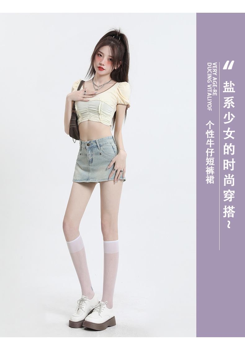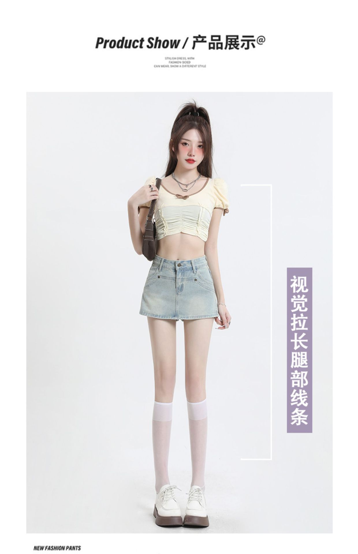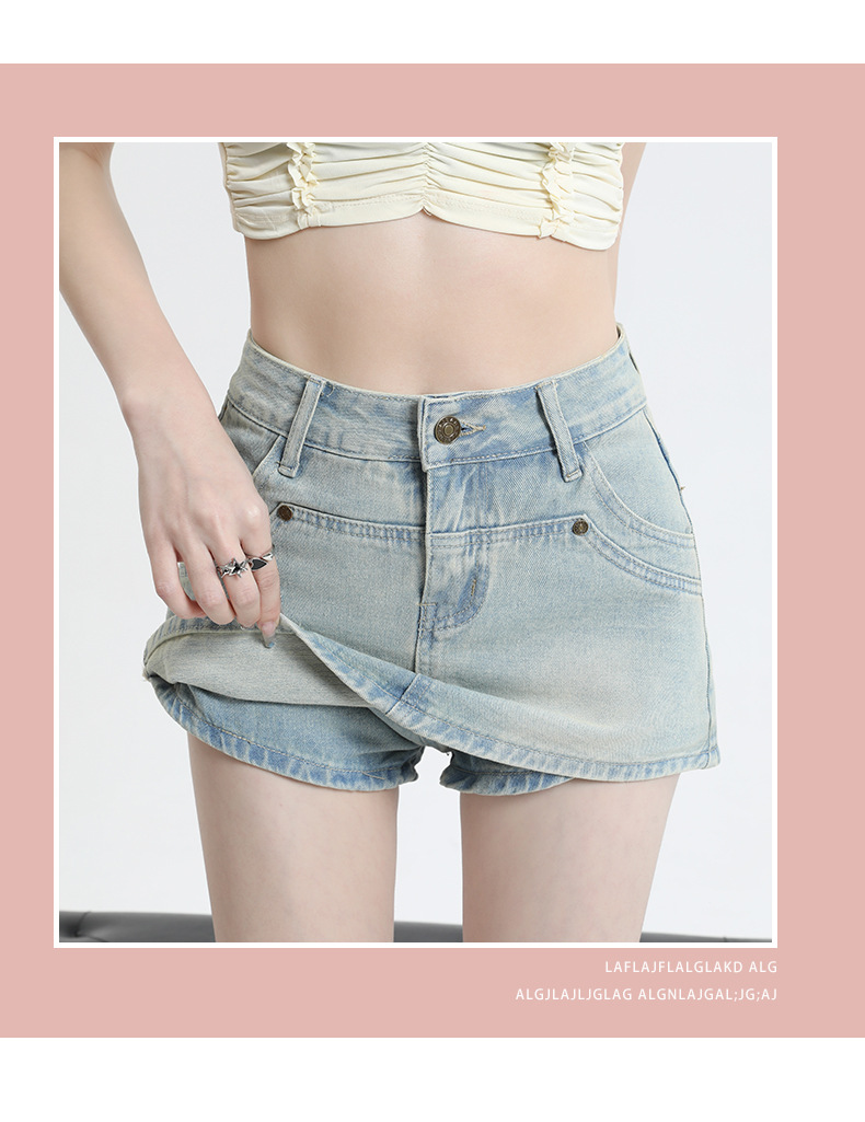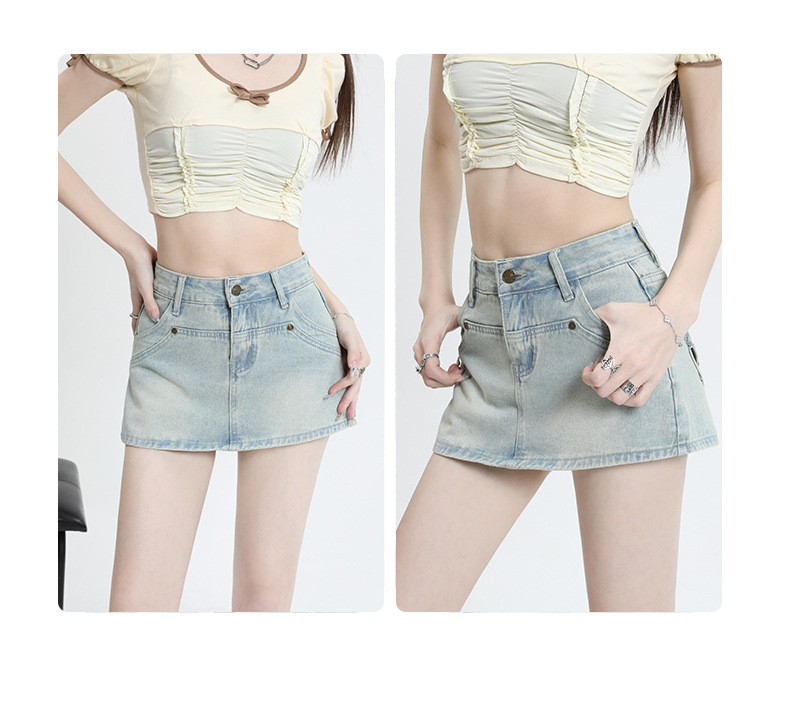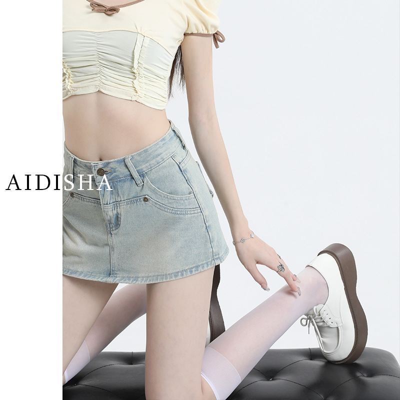 높은 허리 데님 치마 여자 봄 원피스 2025 새로운 A 라인 치마 작은 뜨거운 소녀 반바지 엉덩이 치마